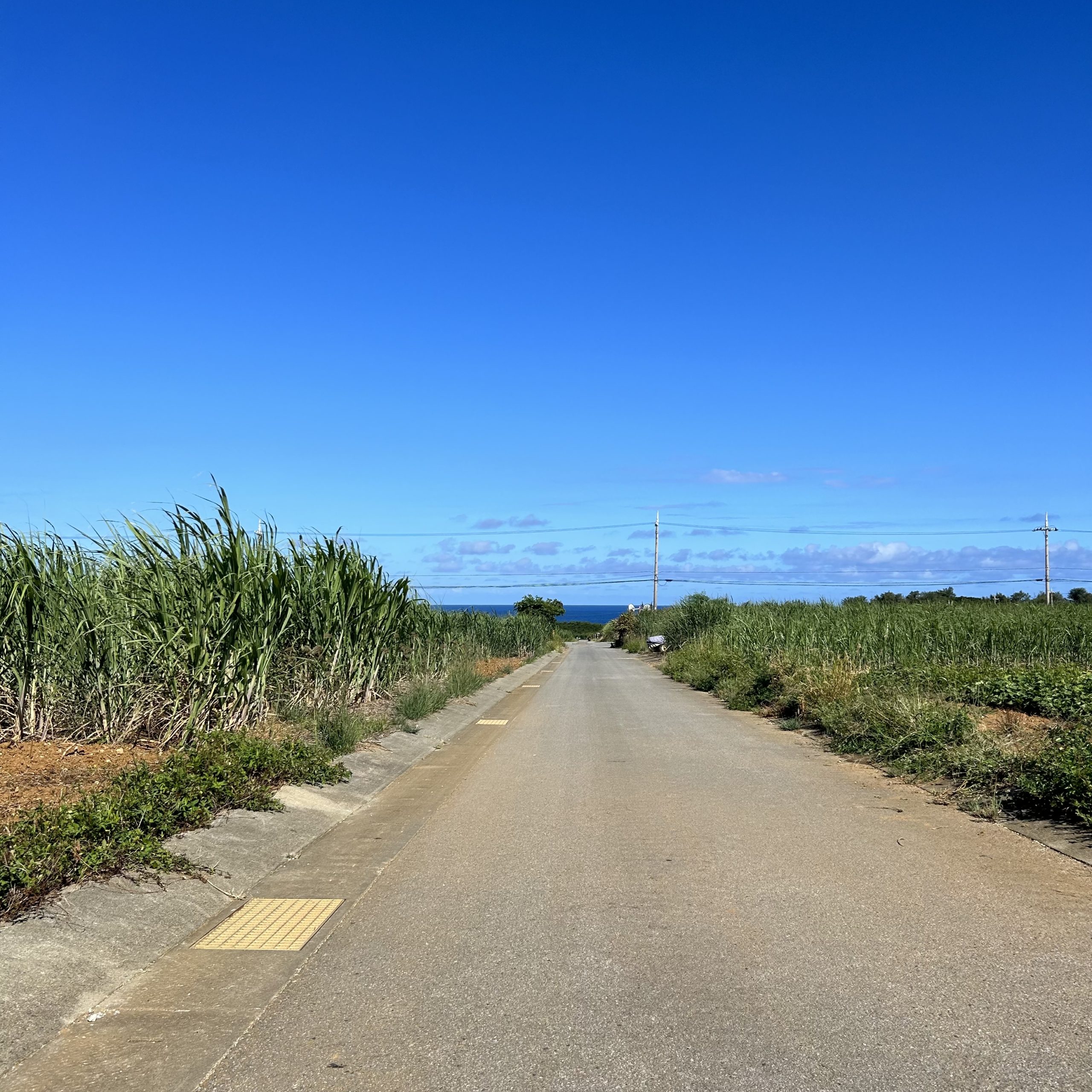 四方がサトウキビ畑の農道で