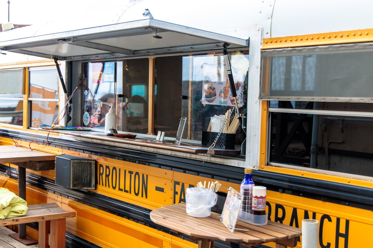 港の近くでは、黄色いスクールバスを改装したキッチンカーからスパイスカレーのいい香りが漂っていました。船の時間が迫っていたため今回はコーヒーだけで我慢しましたが、次回の宿題ができました。