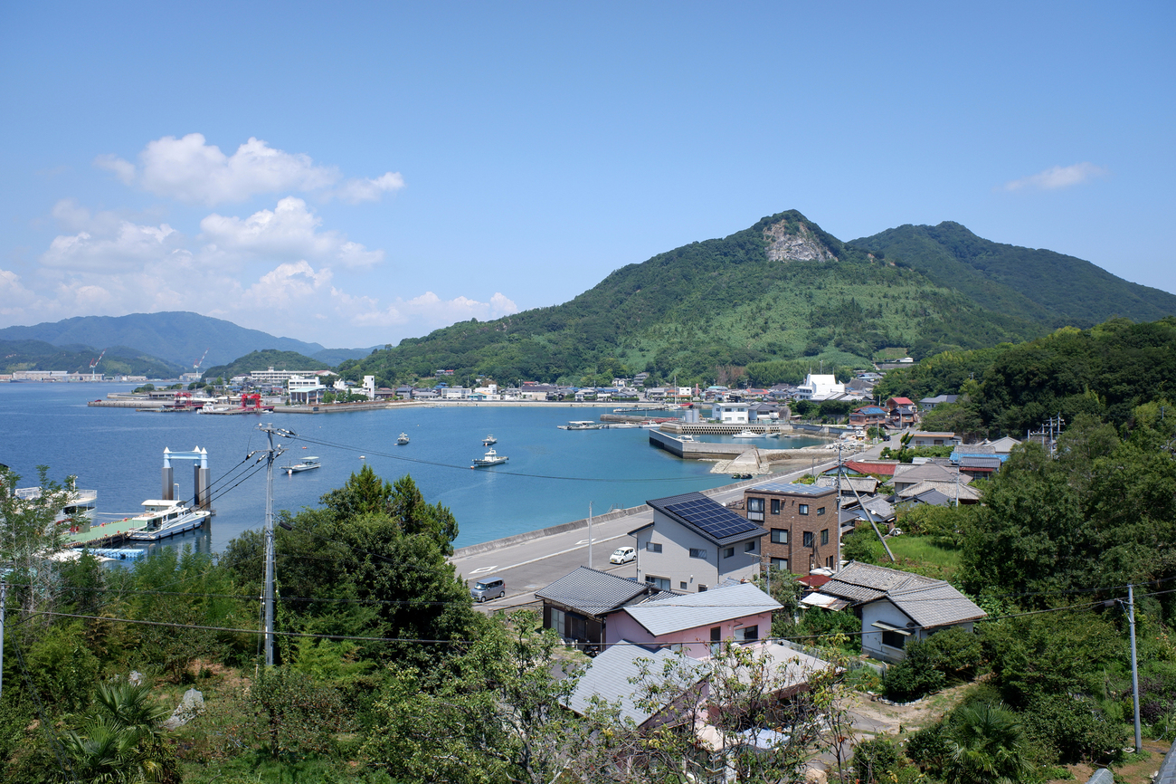 瀬戸内海のほぼ中央、芸予諸島に位置する弓削島。周囲およそ18kmほどのコンパクトな島です。島の中心となる弓削港の周辺には商店や学校、住宅が集まり、穏やかな島の暮らしが広がっています。港の近くでは漁船が行き交い、瀬戸内らしい静かな港町の風景を見ることができます。島の東側には松林が続く海岸や弓削神社もあり、散歩やサイクリングを楽しむ人の姿も見られます。瀬戸内の自然とゆったりとした時間を感じられる場所です。