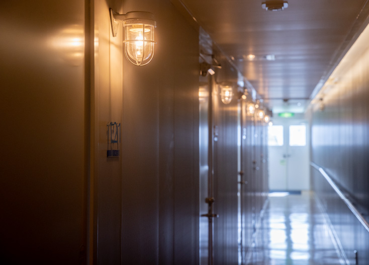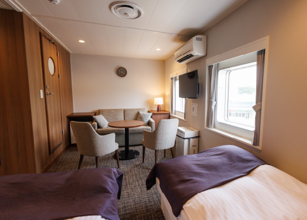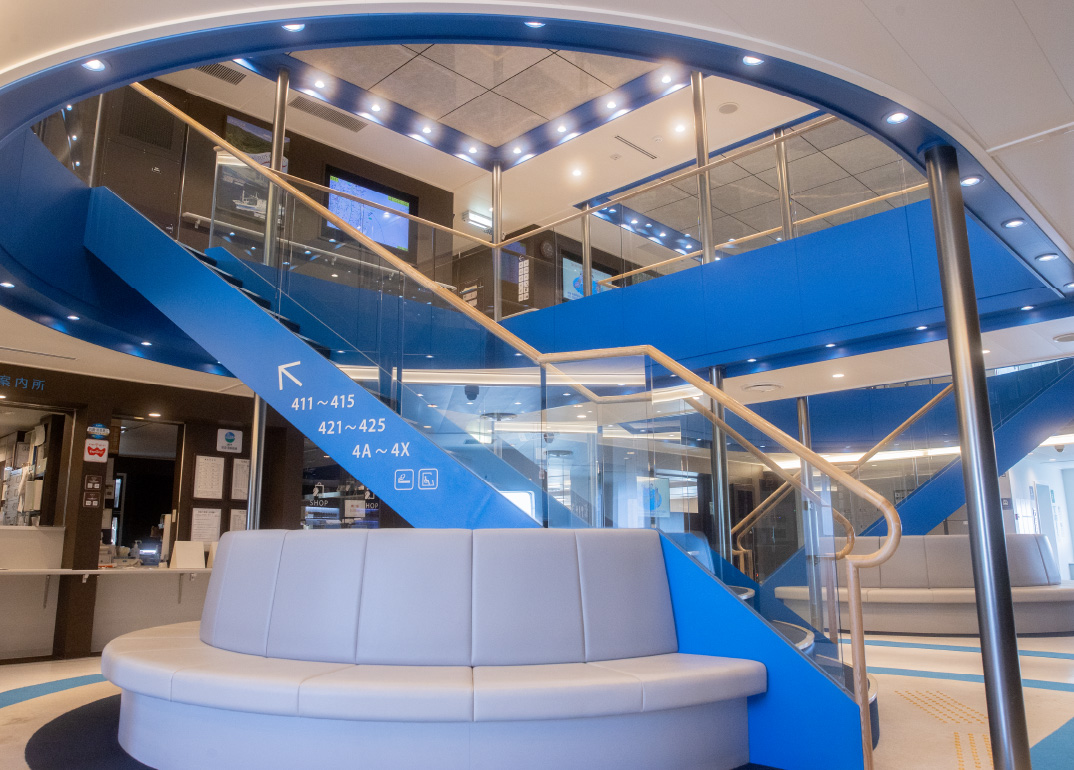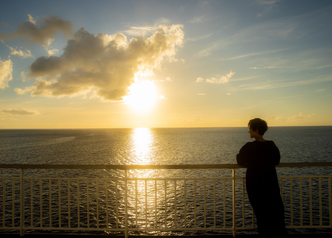 鹿児島新港を夕方に出発する航路では、目的地に着くまでの時間を利用してデッキで夕日や星空を眺めたり、レストランや共用スペースでくつろぐなど、思い思いの過ごし方ができるのが魅力。船内も希望にあわせてホテルの一室のような特別室からリーズナブルな2等室までご用意。なかでも2021年11月に就航したクイーンコーラルクロスは、各船室を繋ぐ通路が一直線に設計された珍しい構造で、海を眺めながらのんびりくつろげるビューシートのほか、メイクルーム、授乳室、キッズルームなど充実の設備が特徴だ。