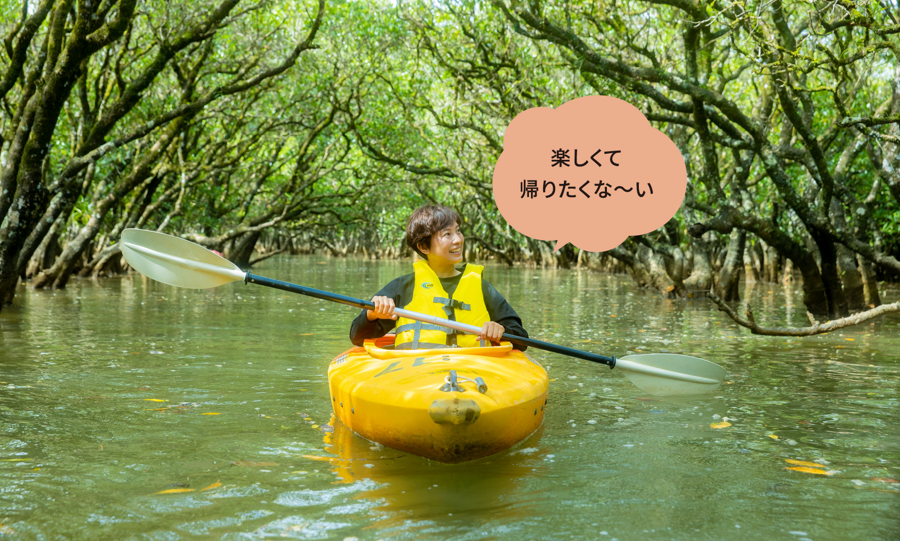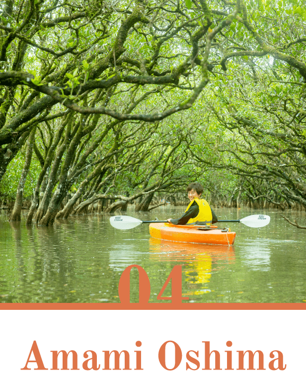 住用湾河口に広がる国内屈指の規模を誇るマングローブ原生林。メヒルギやオヒルギなどマングローブを作る常緑樹のトンネルを潜りながらカヌーが体験できる。潮の満潮・干潮によって表情を変えるので、体験時間は事前に相談を!