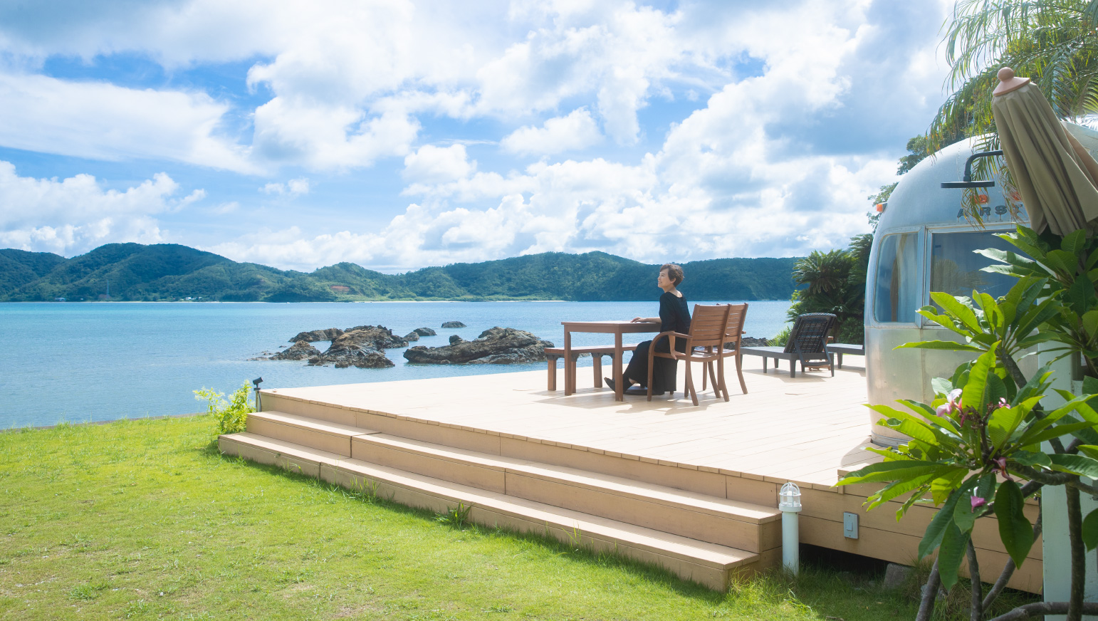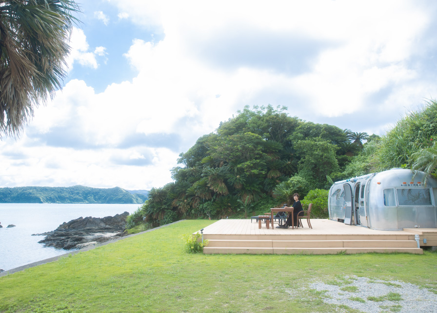 奄美大島の北側笠利町にあるグランピング施設「HOLLY CAMP」。快適にリストアされたヴィンテージキャンピングトレーラーでの宿泊は、波音を間近に感じながら移り行く景観を眺めてのんびりくつろげる南国リゾートの決定版。