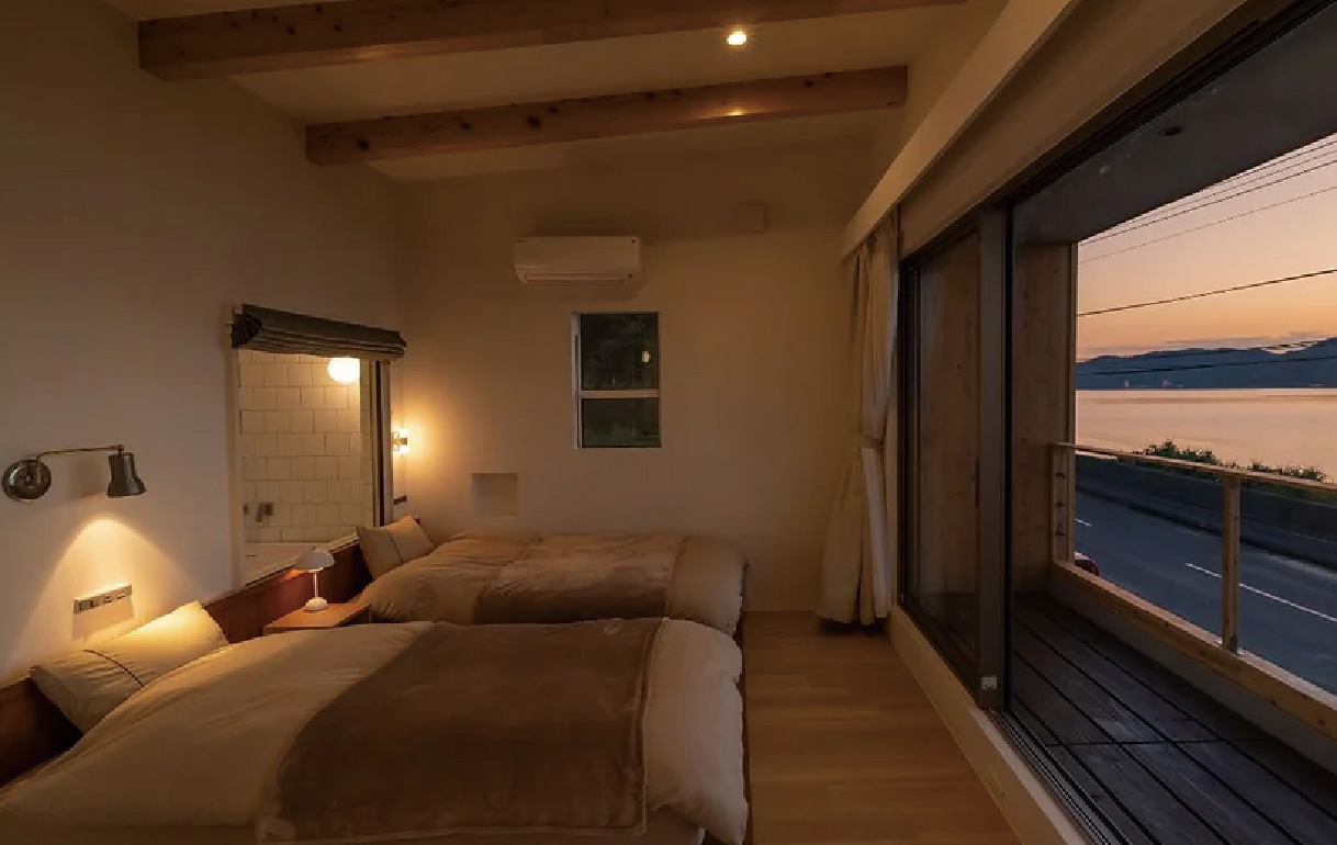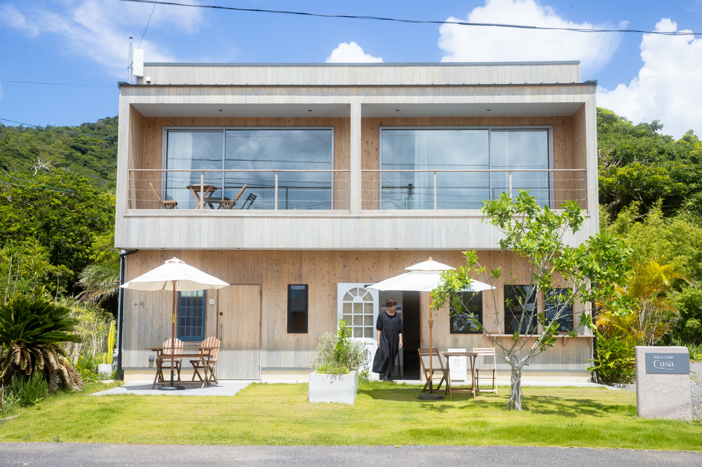 「HOLLY CAMP CASA」は、カフェと併設した2部屋のみの小さな宿。ゆっくりと流れる時間の中で、自然を近くに感じながら、何をするでもないのんびりした心地よい時間に包まれる。ツインとダブルの部屋があり、一棟貸切利用も可能。カフェではパッションソーダなどのドリンクのほか、石窯ピッツアも人気。