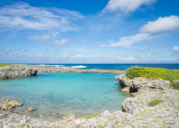 隆起珊瑚礁の島ということもあり、ダイビングスポットとしても注目されている喜界島。天然の入り江を利用した喜界島最大の海水浴場スギラビーチは、透明度の高さに加えてサンゴのリーフによって穏やかな波が特徴。島内は比較的平地が多く、レンタサイクルもあるので、自転車でサイクリングを楽しむのもおすすめ。