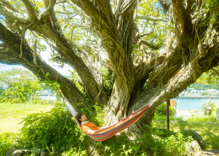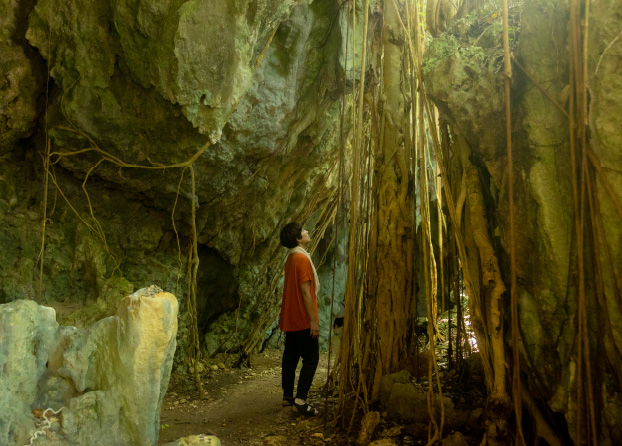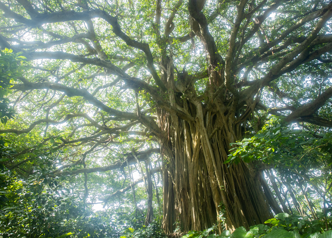 手久津久にあるガジュマル巨木は、その大きさから圧巻の佇まいで、島一番のパワースポット。そのほか、ウフヤグチ鍾乳洞や喜界島の農業を支える地下ダムなど神秘的な場所も必見。