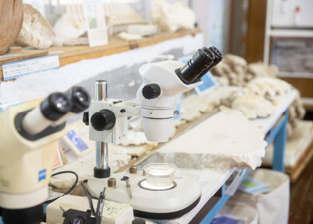稀少な隆起珊瑚礁で形成された喜界島を拠点に、北海道大学の教授をはじめとした精鋭が様々な調査研究を行っている「喜界島サンゴ礁科学研究所」。展示室ではサンゴの標本や研究所の活動内容を閲覧できる。