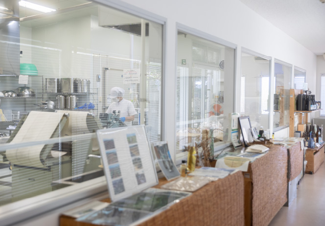 喜界町農産物加工センターでは、施設内に備えている様々な加工機器やスペースを島民がレンタルして使用可能。黒糖や胡麻、そら豆などを用いた加工品はもちろん、フードロスの問題を抱えていた島みかんを使ったクラフトコーラなども、このセンターから生み出された商品。現在では、ほぼ100%の稼働率というほど島民に活用されており、島をあげて新しい特産品の開発や発信に力を入れている。