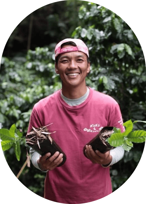 りが必要」と考えるようになった。同時期に徳之島出身の親族から連絡があり、急遽サトウキビ畑を譲り受けることに。そこから手探りでコーヒー栽培をはじめ、小さな6次産業化を実現させた。その後コーヒーの花や葉、新芽など、コーヒー豆以外の部分に着目し商品化にも挑戦。コーヒー農家の労働環境や収益の底上げにも尽力している。