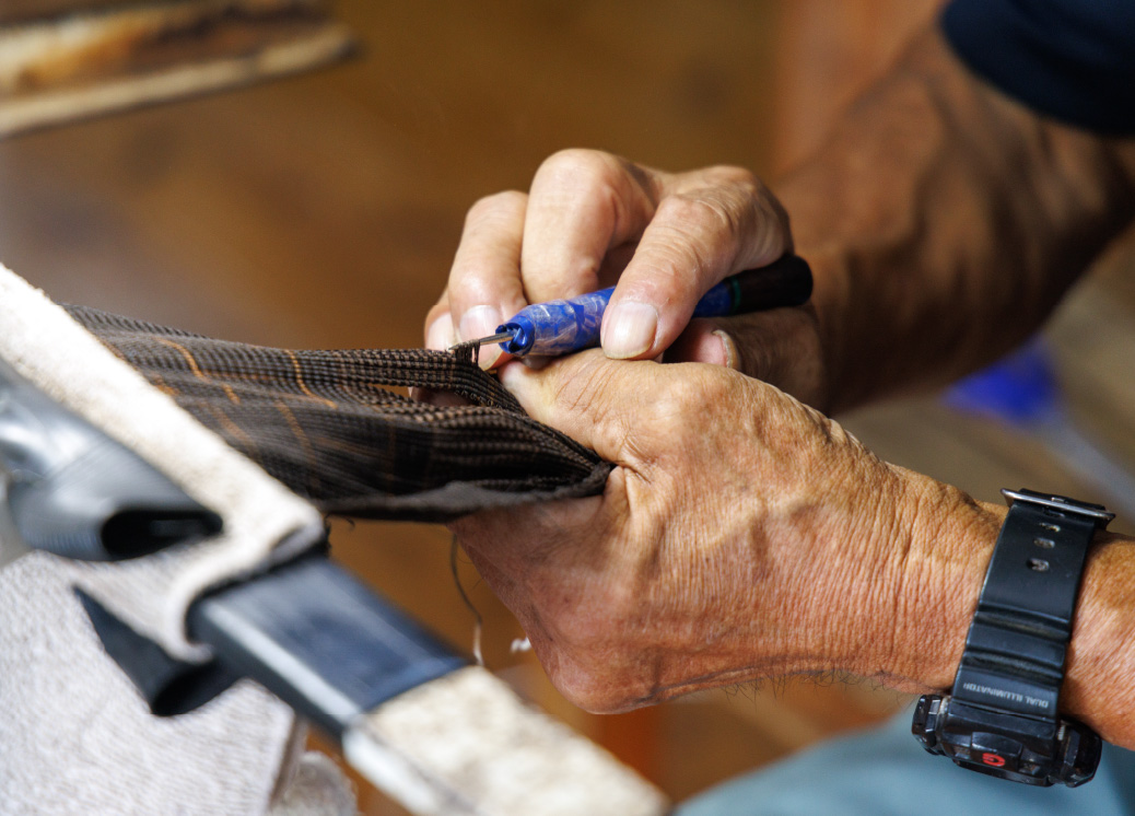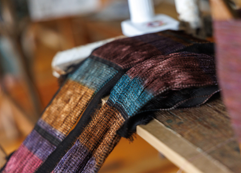 染色した糸は何人もの職人の手で加工される。絹糸に色を入れ、乾燥した泥を取り除き、一本一本丁寧に仕上げていく技術は、まさに神業。丹精込めてできた糸を使って、図案の通りに正確に織っていく。細かな点と点を紡ぎながら、何ヶ月もかけて織る上げる作業は、時間と同じだけ想いが込められている。