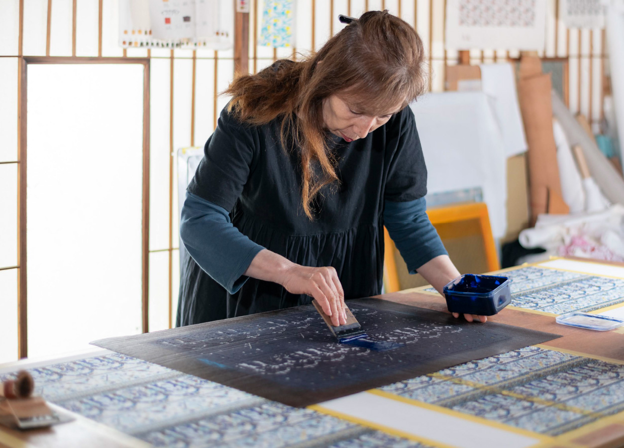 熊本県南西部にある天草諸島のうちの一つ「天草下島」。天草上島と天草下島、御所浦島で構成される天草諸島の中でも最大の島で、周囲を透き通った美しい海が囲む。天草四郎率いる民衆と領主が争った「天草島原の乱」の舞台としても有名な天草下島は、南蛮文化やキリシタンの歴史が大きく影響し、今も異国文化が色濃く残っている。その中で、誕生、衰退、復興を成し遂げた工芸「天草更紗」。更紗は、海外から舶載された外来の模様布のことで、ポルトガル船やオランダ船によって長崎に伝来した更紗の技術を天草の職人たちが身につけ、天草更紗として製作したといわれている。異国感ある風合いに、色鮮やかで細密な更紗は、庶民まで幅広く愛される布となった。