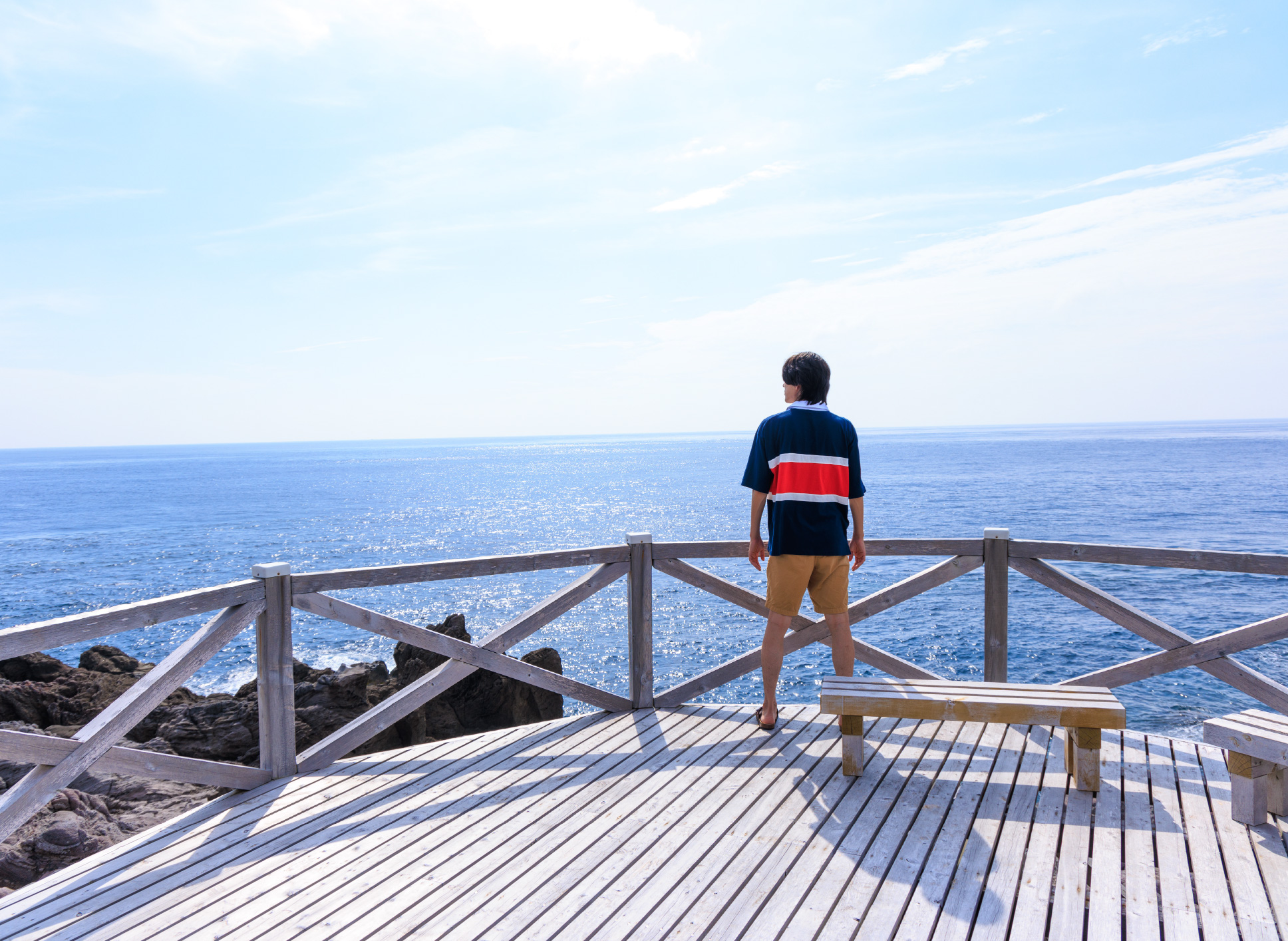 島の外周は約12km、美しい海岸線を描くリアス式海岸はまさに大自然の芸術品。別名「式根松島」と呼ばれるように、白砂と黒松の素晴らしい景観が広がる。島内には水着を着用すれば24時間無料で好きなときに入浴できる露天風呂が3カ所。それぞれが特徴的で、海のそばで自然を眺めながらのんびり、ゆったり浸かることができる。島は