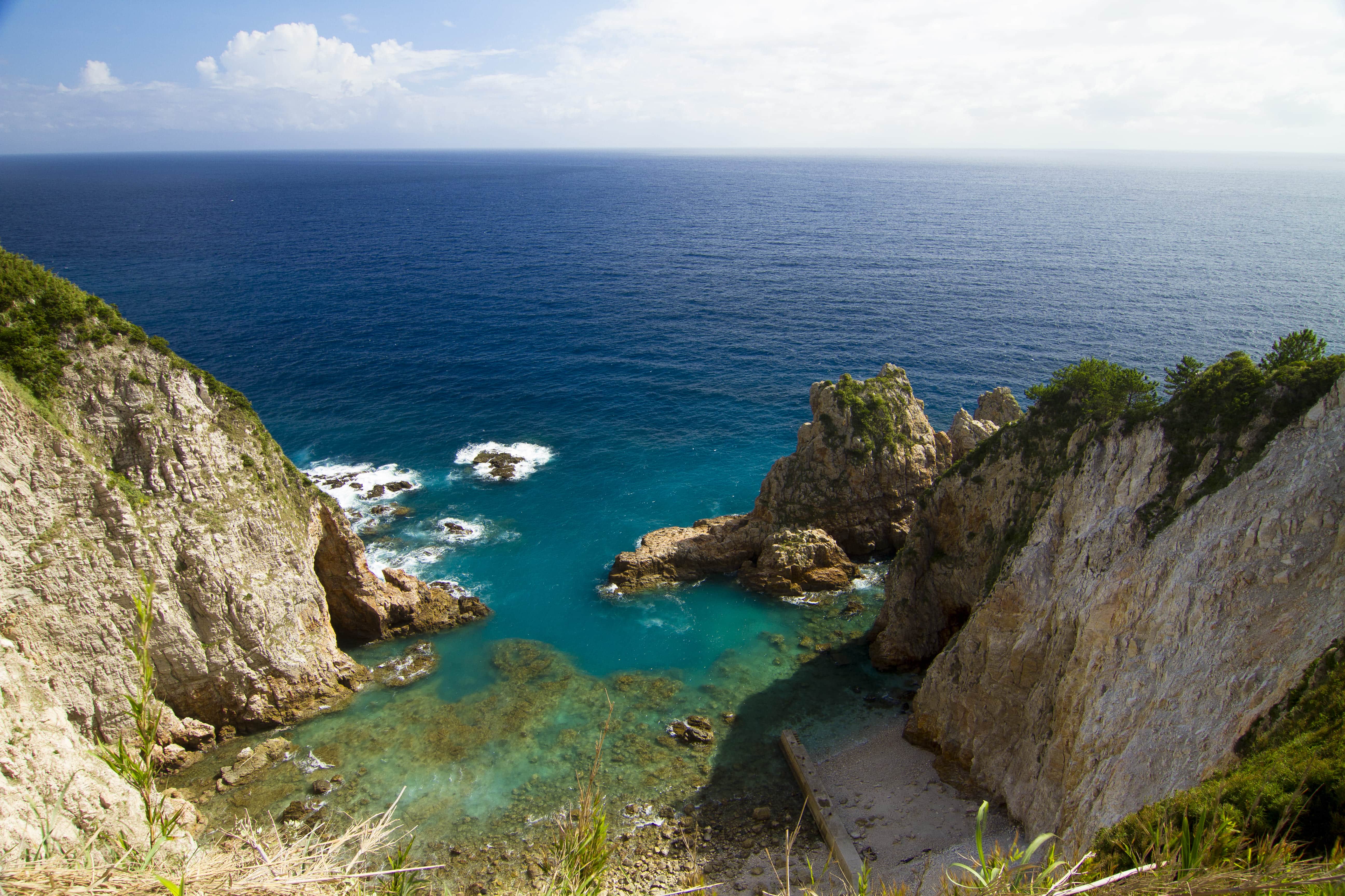 竹島は三島村3島のうち、鹿児島市から出て最初に着く有人離島です。島の最も高い山で標高220mという起伏のない平坦な地形が特徴で、竹島という名の通り島全体が竹(大名竹)に覆われています。硫黄島・黒島と合わせて三島村を構成。この3島は「日本の秘境100選」に選定されています。海岸の多くは絶壁になっており、島の南側には荒々しく切り立った断崖に囲まれた籠港(こもりこう)があります。石灰岩から造られた白亜の断崖と青く澄み渡った海が、まるで地中海にいるような雰囲気を醸し出しています。ほかの断崖スポットでも、透明度の高いマリンブルーの海を望むことができます。籠港は漁船の避難場所として利用されていました。竹島が歴史上に最初に表れるのは日本書紀巻二五孝徳天皇の時で、博多を出港した遣唐使船が2か月後に竹島へ難破したと記されています。当時の犠牲者を火葬したオンボ崎と呼ばれる岬は、隣の硫黄島を望む絶景スポットとして親しまれています。また、島の随所には3000年前頃の縄文後期の遺跡が残っていたり、三島村指定文化財に認定されている「聖大明神社」や「六地蔵」が、島の歴史ロマンを感じさせます。「聖大明神社」の境内は島の竹や樹木で覆われ、夏でも涼しい神々しいスポット。特産品は、島を覆う竹林から採れる「大名たけのこ」で、たっぷりと食べ応えのある食感で柔らかく、アクが少なく、焼いても煮ても絶品です。大名の献上品とされていたことから、この名前が付いています。そのおいしさから筍の王様と言われ、鹿児島を中心とした特産品で、南九州では人気の筍です。
