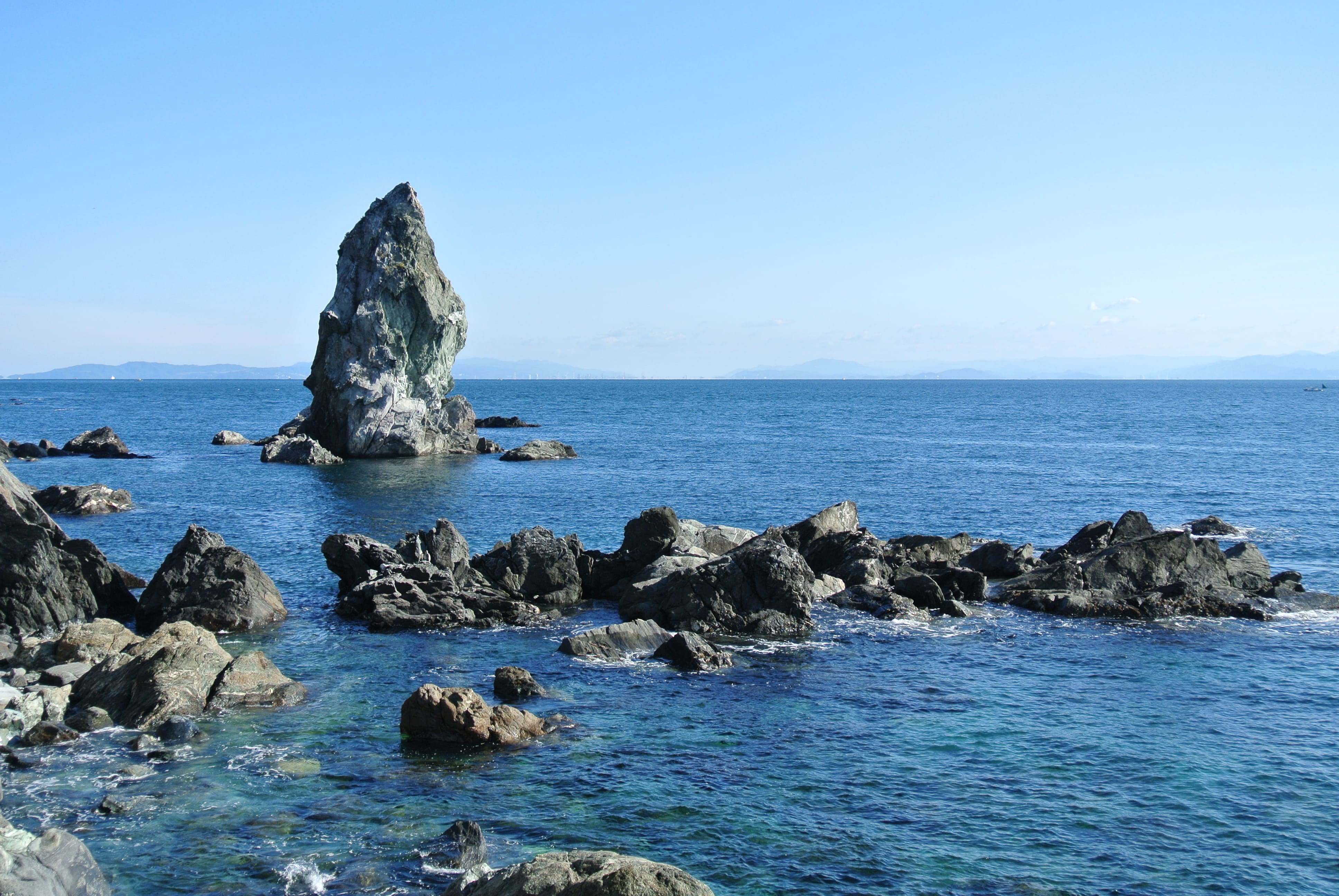 淡路島の南方に位置し、周囲は約10㎞、島を散策しても約4時間ほどで1周できてしまう小さな島が沼島です。1950年代までは人口も2,500人ほど住んでいましたが、現在は約420人ほどになっています。灘の土生港から沼島汽船でしか行くことができない離島ではありますが、神々の集まりによってつくり出された島として名を馳せており、観光スポットとしても近年大変人気があります。沼島以外にも、日本には神々がつくり出したとされる島の伝説を残すところがいくつかありますが、その中でも沼島は国生み神話の島の最有力候補と言われています。多くの伝説を残す神秘的な島なので、沼島の自然が神々しく、見るものすべてを魅了します。人々が住む町としては港周辺の限られたエリアのみとなっていますので、島の大半は自然がそのまま残っていますが、近年はカフェができたりと小さいながらも疲れを癒してくれるスポットもできています。