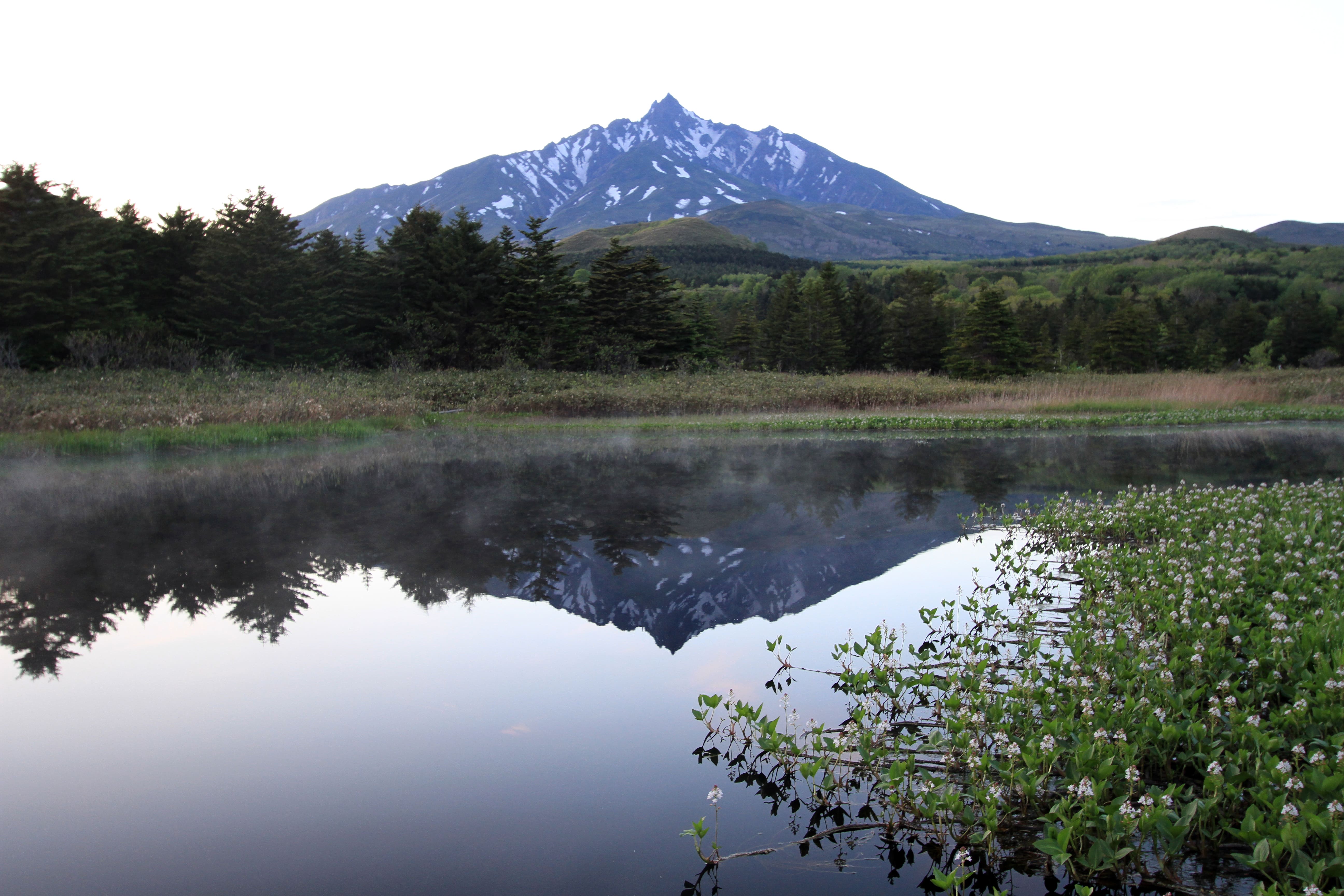 利尻島は、日本の北のてっぺんである北海道の稚内市から西へ52㎞に位置する日本最北部の離島です。島の真ん中にそびえる「利尻山」は、日本百名山に数えられる標高1721mの山。利尻礼文(りしりれぶん)サロベツ国立公園に指定されています。山名はアイヌの言葉で高い山を意味する「リイ・シリ」に由来するといわれています。その山容はたいへん美しく「利尻富士」とも呼ばれ、古くから霊峰として信仰の対象とされてきました。利尻島では、コマドリなど約317種類の渡り鳥や、リシリリンドウなど日本ではここにしか咲かない植物が多数生息するなど、寒冷な気象条件と、海の中に浮かぶ孤島という地理的条件から独自の生態系が見られるのが特徴です。また不思議なことに北海道本土でよく見られるヒグマやシカやキツネ、ヘビなどの動物が全く見られないことでも知られています。人口は約4300人。島は利尻町と利尻富士町の2つの町からなり、利尻山をぐるっと囲む海岸線で島民は暮らしています。島の移動はレンタサイクル、レンタカー、観光タクシー、路線バス、観光バスです。島には駐在所、消防署、役場、病院、診療所、そのほか大型ホテル、民宿、ゲストハウスは合わせて30軒ほど。買い物はコンビニが3軒、スーパーやホームセンターはが数軒あり、食事は特産のウニ丼や利尻昆布で出汁をとったラーメンが堪能できるお店など多数あります。
