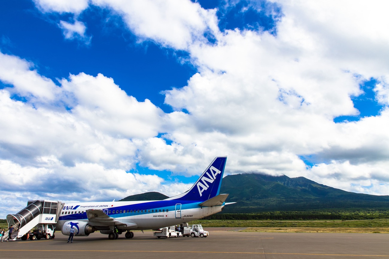 行きは新千歳空港まで飛行機で飛び、さらに乗り換えて利尻空港へ。「島に行くなら船で」と常々思っていますが、限られた時間で両方の島を訪れるなら、飛行機は効率的です。到着時、「飛行機を降りて振り返ると、当機と利尻富士を一緒に写真に収めることができますよ」というCAさんの粋なアナウンスで、見事な山の姿を目にすることができ、幸先の良い旅のスタートが切れました。