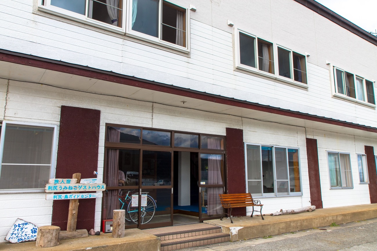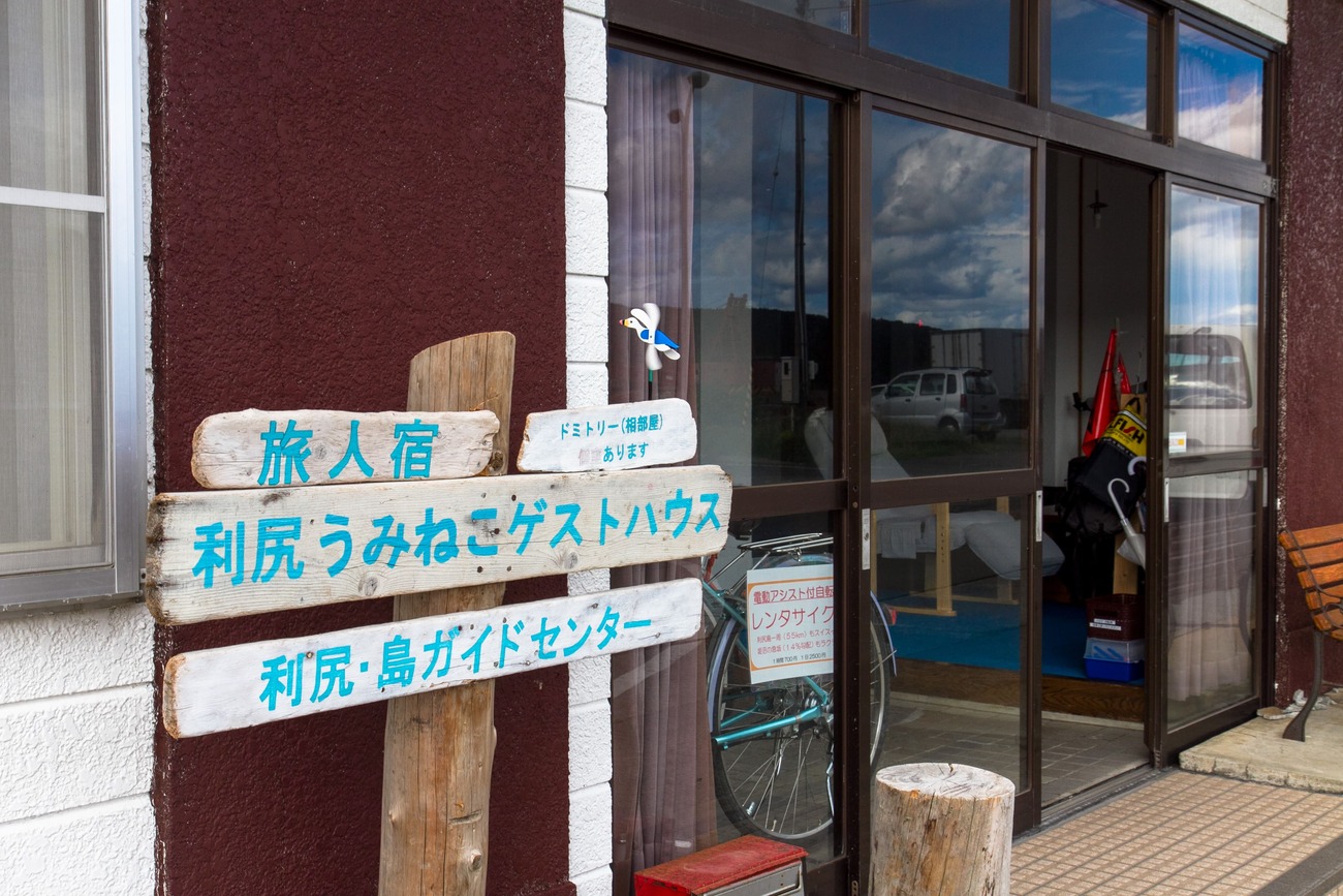 空港から宿のある鴛泊港に向かい、港前でスクーターを借りました。どちらの島も歩くには大きい島なので、足の確保が最優先です。その後、鴛泊港目の前の「利尻うみねこゲストハウス」へチェックイン。ここのオーナーの西島さんは長年利尻島の自然ガイドをされていて、自身も島旅好きという頼もしい方。利尻富士が見える広々とした宿のミーティングルームでは宿泊客同士の交流も盛んで、古き良き「とほ宿」や「ユースホステル」の空気が感じられます。