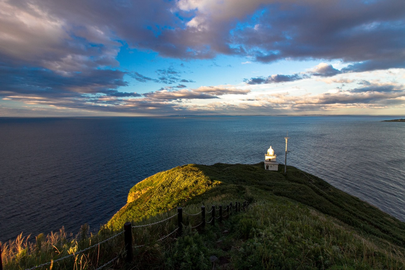 日が落ちる前に鴛泊港の宿まで戻り、ペシ岬に登ります。姫沼からの帰路で、鴛泊港を守るようにそびえるペシ岬の姿に目を奪われたからです。利尻富士もいいけれど、鴛泊港にいるとこのペシ岬の存在感は無視できません。細く急な道を息切らせながら登ると、視界が360度開け、「おお……」と思わず声が漏れました。眼下には鴛泊港、向こうには利尻富士。岬の先端には鴛泊灯台が夕日に照らされています。冬が厳しいからか岬には背の高い木はなく、低灌木が草原のように斜面を覆っているのも北の島らしい風景でしょう。