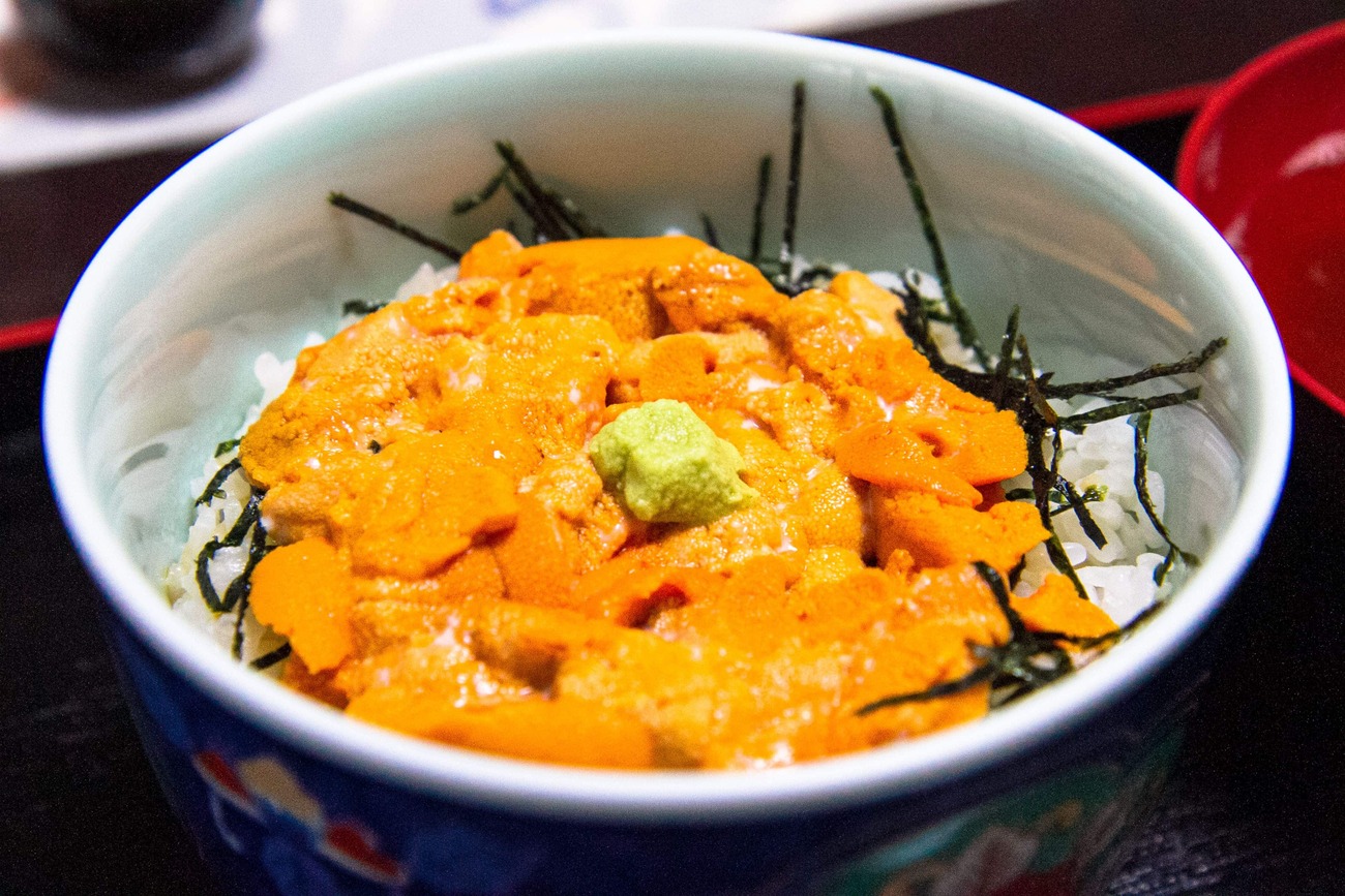 道は島の西側、沓形の町へ。お昼時だったので美味いと聞いていたエゾバフンウニをぜひとも食べたい。お値段はなかなかですが、ミョウバンや塩水漬けになっていない生のエゾバフンウニを食べる機会もそうそうないと思い、お店で注文。運ばれてきたウニ丼は、見たことがない濃いオレンジ色。利尻昆布を食べて育ったウニは旨味と味の濃さが違いました。