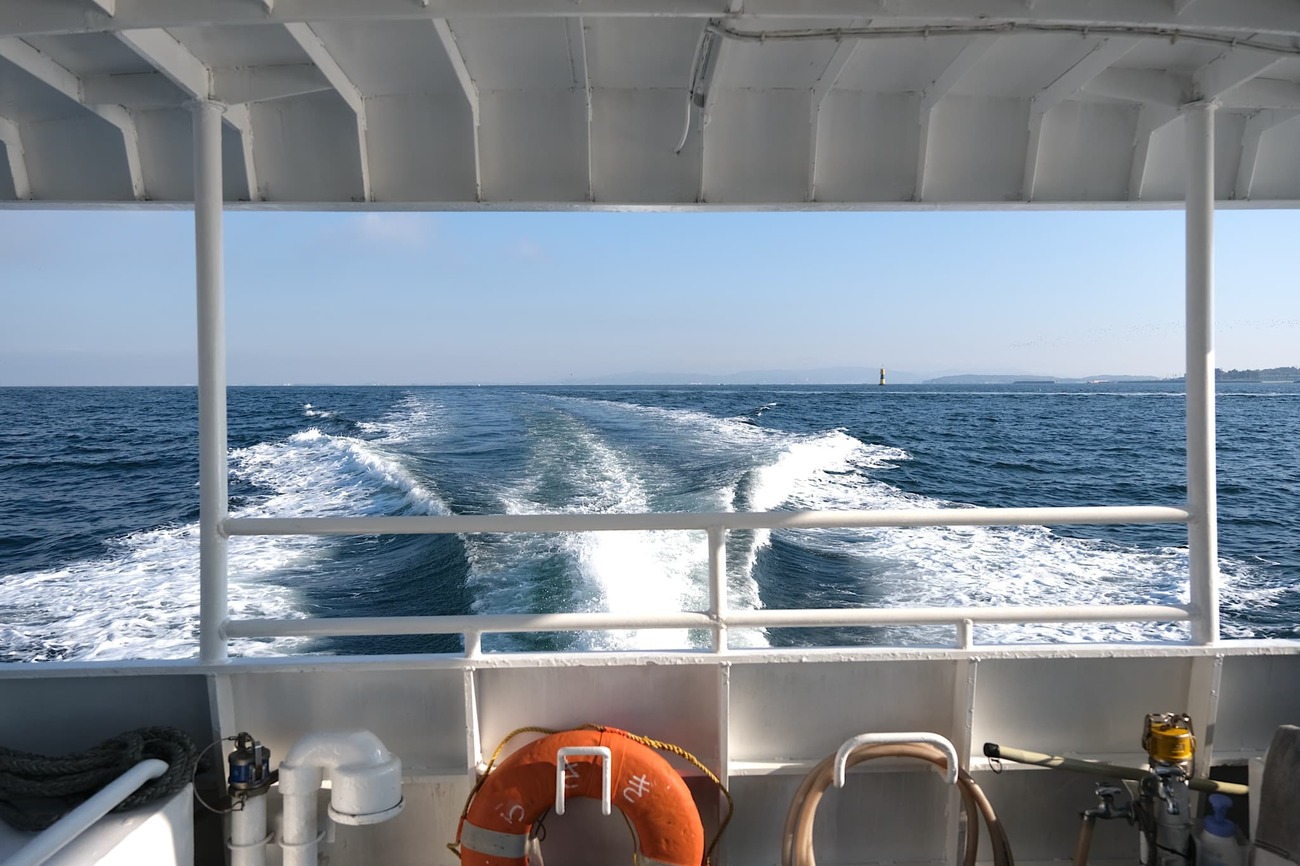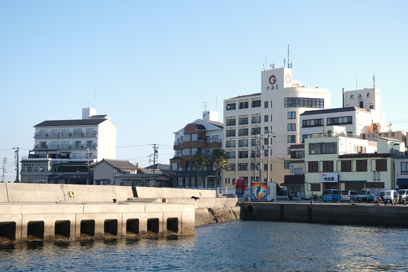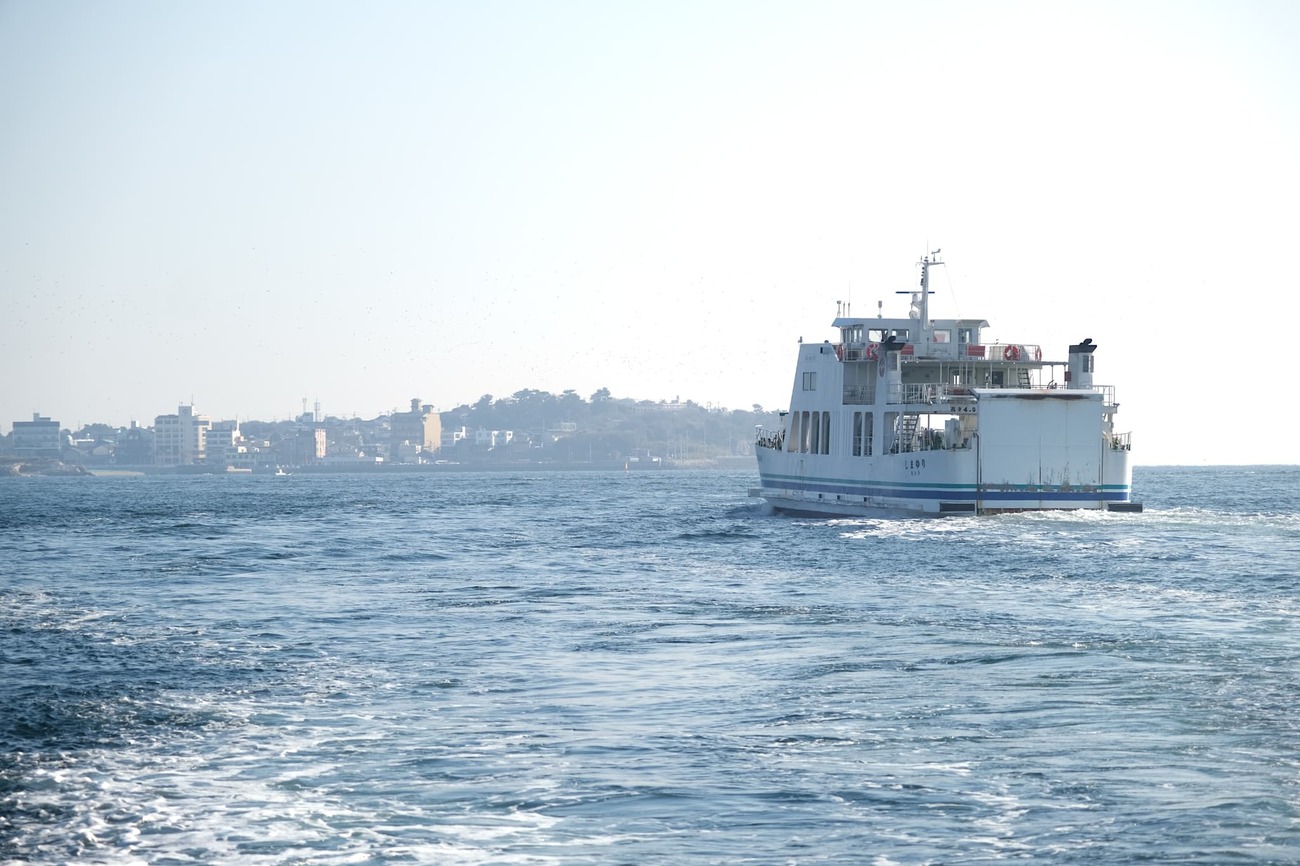 三河湾に浮かぶ離島の中で、今回訪れたのは「日間賀島」。師崎港から高速船でわずか10分、「名古屋から一番近い島」として知られています。私の自宅からも、知多半島道路と下道を合わせて片道1時間ほど。このアクセスの良さは、赤ちゃん連れの旅にはとてもありがたいポイントです。初めて高速船に乗った我が子は、窓から波を眺めながらリラックス。私はというと、いつものように船の後方へ向かい、三河湾の風景を写真に収めました。寒さの厳しい季節ですが、この日は少し暖かく、潮風が心地よく感じられるほど。わずか10分の船旅ながら、旅のはじまりを実感できる特別な時間でした。