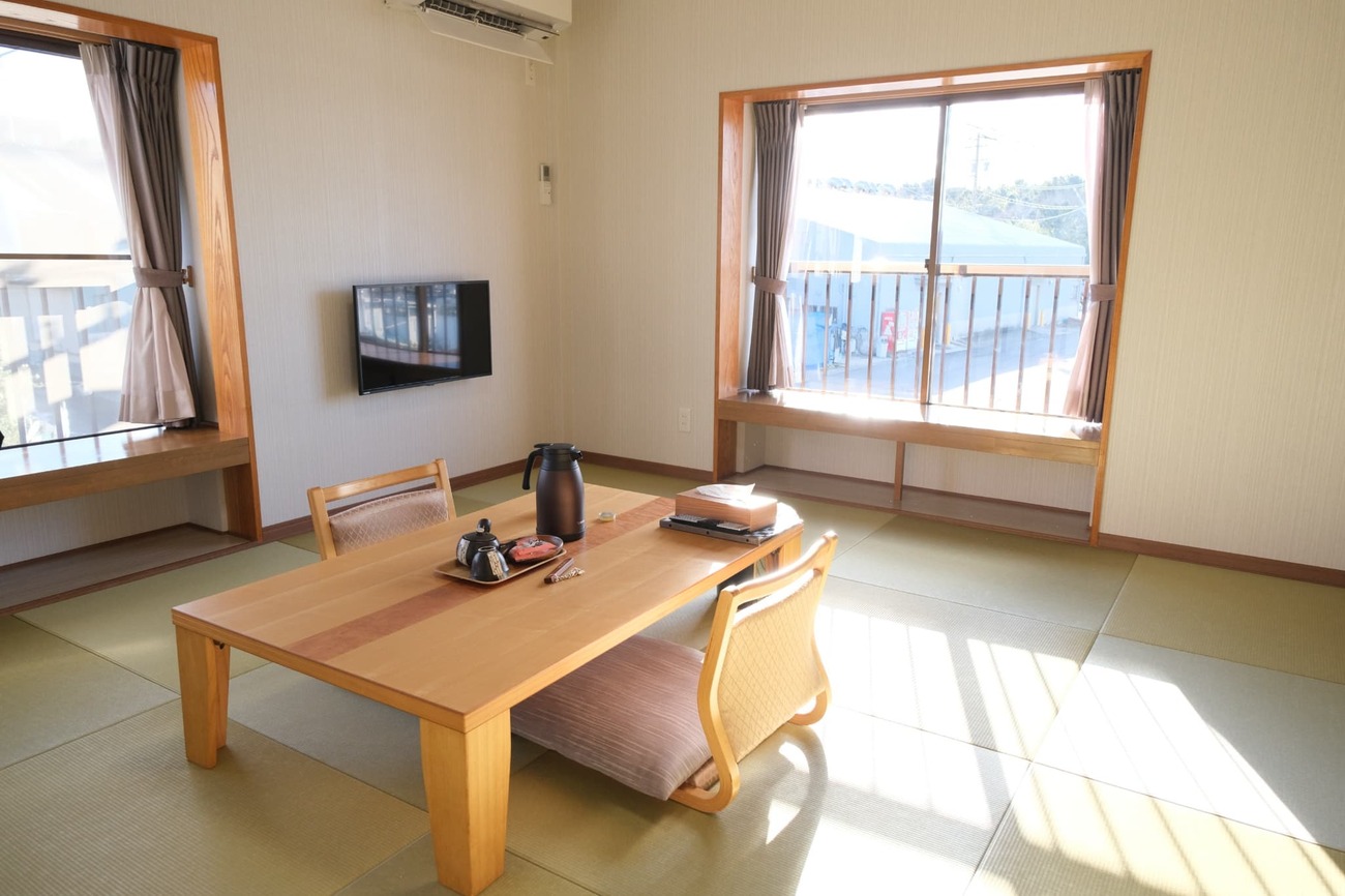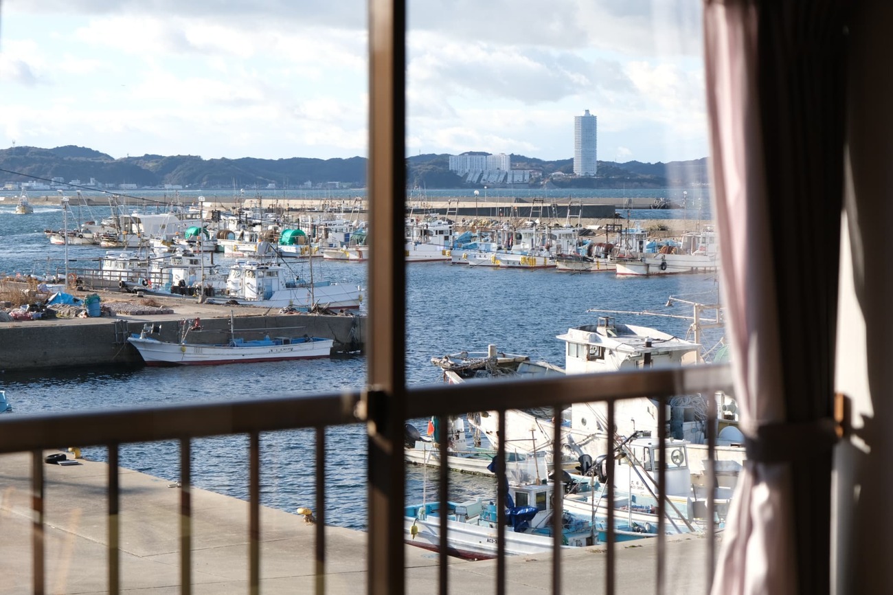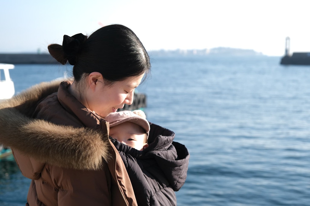 赤ちゃん連れの旅行では宿選びが重要ですが、私は特に次の2点を意識しています。まず、赤ちゃんが安心してハイハイしたり歩いたりできるよう、清潔で広々とした和室であること。もう一つは、幼児向けの料金設定が良心的であること。これが整っている宿は、赤ちゃんや幼児連れの家族を歓迎している証でもあります。これらのポイントを踏まえ、今回は「人情味あふれる宿 大成」さんを選びました。新しく改装したばかりの客室は綺麗な畳敷きで段差が少なく、水回りも清潔で快適に過ごせました。また、窓の外には漁船が連なる風景が広がり、島旅ならではの旅情を存分に味わえたのも良かったです。