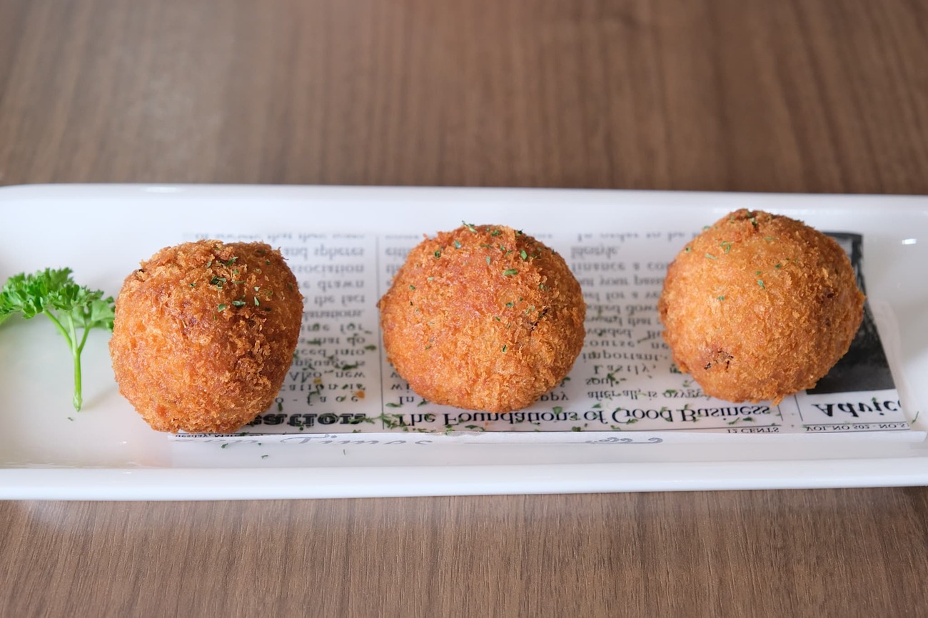 平日の14時頃、飲食店が閉まっているところが多い中、西港からすぐの「KITCHEN macha」でランチをいただきました。タコやふぐが名物の日間賀島ですが、実はしらすの漁獲量も豊富。塩気の効いた風味豊かな釜揚げしらすに醤油をひと垂らし、清涼感のある青じそと一緒に頬張ると、間違いのない美味しさです。そして、このお店の隠れた名物が「ガーリックたこ飯ボール」。ほんのり優しい味わいのタコめしに、ガーリックの香ばしさが加わり、外はカリッと、中はふわっと仕上がった特別な一品でした。幸い我が子はぐっすり眠っていたので、夫婦水入らずで島グルメを堪能。宿にチェックインするまでに小腹を満たしました。
