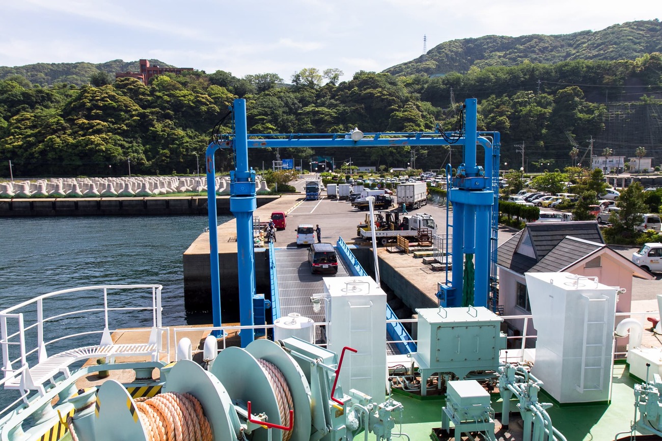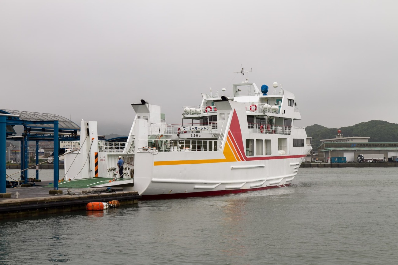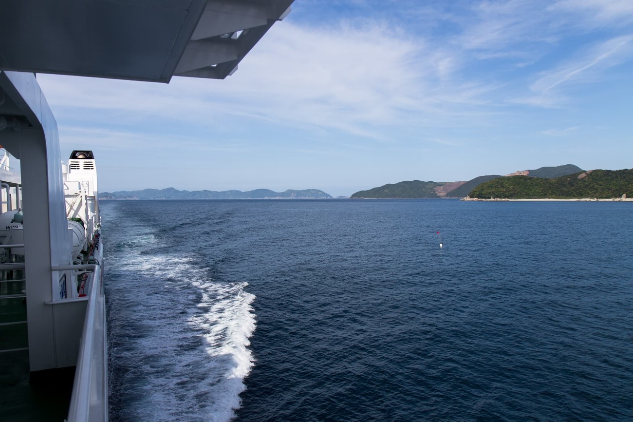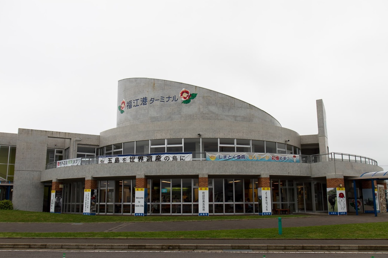 五島列島への行き方は色々あります。そして列島内での船の便も多く複雑です。船で行くには福岡の博多港や、長崎の佐世保港、長崎港などが挙げられます。今回は、長崎空港まで飛び、バスで長崎港へと移動、そこからフェリーかジェットフォイルで五島を目指しました。旅情を味わいたくてフェリーを選びましたが、船内に食堂はなく小銭もなかったため、水しか買えず空腹のまま過ごすことに。乗船前の昼食の準備は必須だと痛感しつつ、島影が近づく海を眺めながら4時間の船旅を過ごしました。それもまた、島旅ですね。