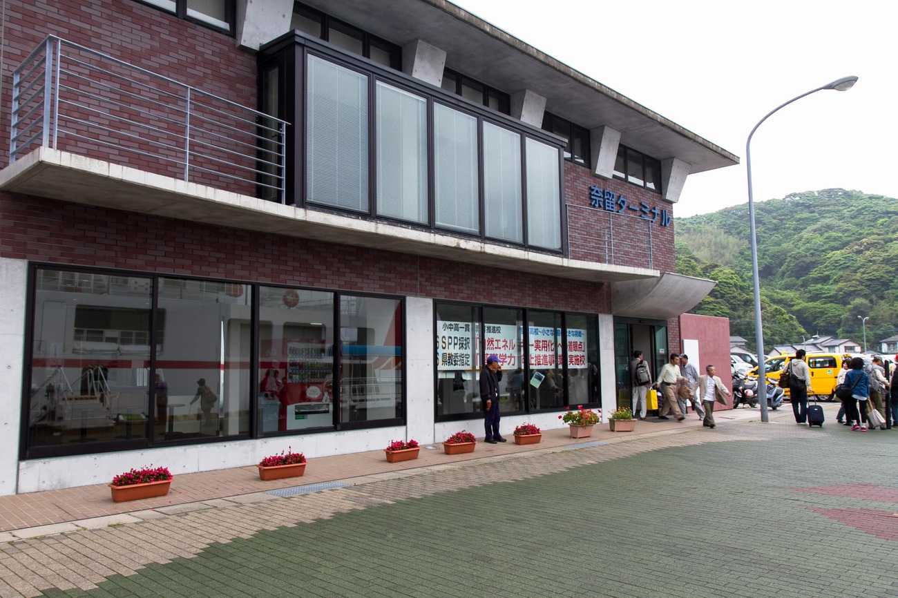 旅3日目は、福江島の2つ北隣の「奈留島」へ。当時はまだ世界遺産登録前だった「江上天主堂」を目指します。福江港から五島旅客船のフェリーオーシャンに乗り、45分で奈留島に到着します。奈留島港ターミナル内の「奈留島港レンタカー」さんで原付を借り、江上天主堂へ。