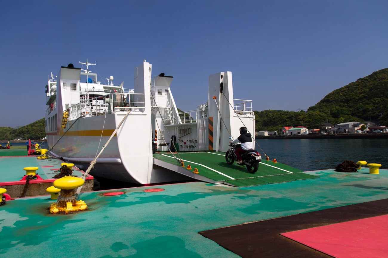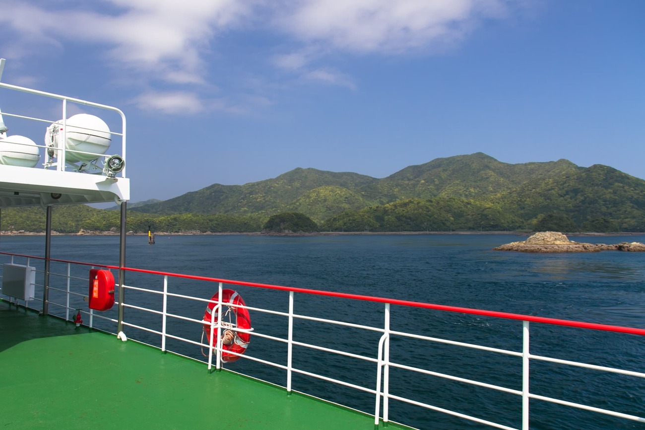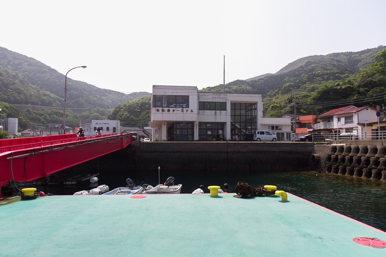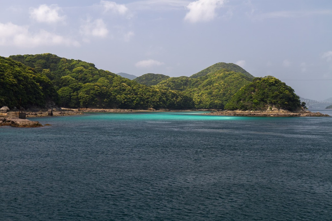 下五島の福江島や奈留島から、上五島の中通島・若松島へ渡るにはいくつかの航路があります。前回レポートした下五島旅で奈留島を訪れた後、奈留島港からフェリーオーシャンに乗って、若松島へと向かいます。3階フロアに上がると誰もおらず、貸切状態。デッキに出ると、春らしい青空の下、多島美が広がっていました。若松島と中通島をつなぐ若松大橋をくぐり、若松港に到着。奈留島から50分ほどの船旅でした。