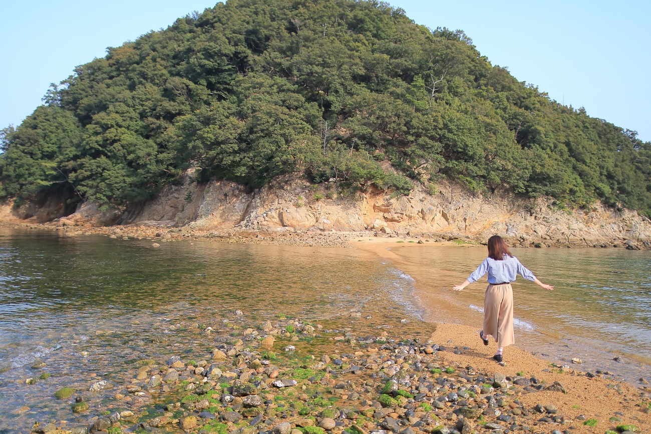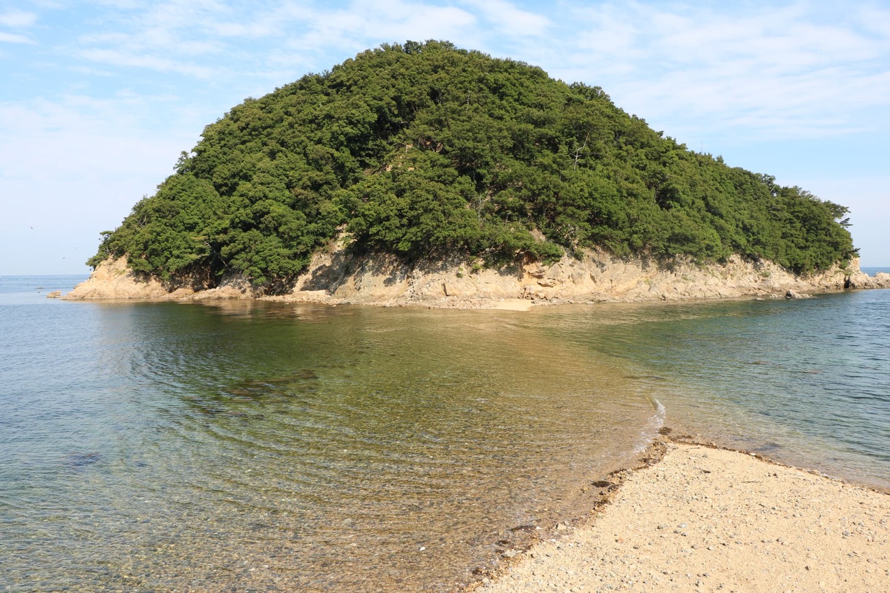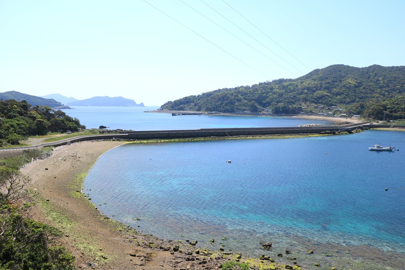 長崎県五島列島北部の新上五島町では、有福島と日島(ひのしま)という2つの島があり、橋ではなく防波堤でつながっている珍しい風景が見られます。1970年代に造られた県道169号線の堤防道路は、今では地域の大切な生活道でありながら、海の青さと島々の緑が織りなす抜群のロケーション。堤防道路の内側は、小さな湾のようになっており、一面沖縄の海の透明度にも匹敵するエメラルドブルーの海が広がります。人影も少なく、ほぼ貸し切り状態の美しい風景を満喫した後は、日島の静かなビーチへ足を延ばし、透き通った遠浅の海を素足で感じてみてください。また日島には、大陸との交易を象徴する石塔群が残されており必見です。