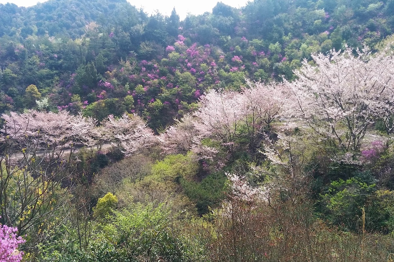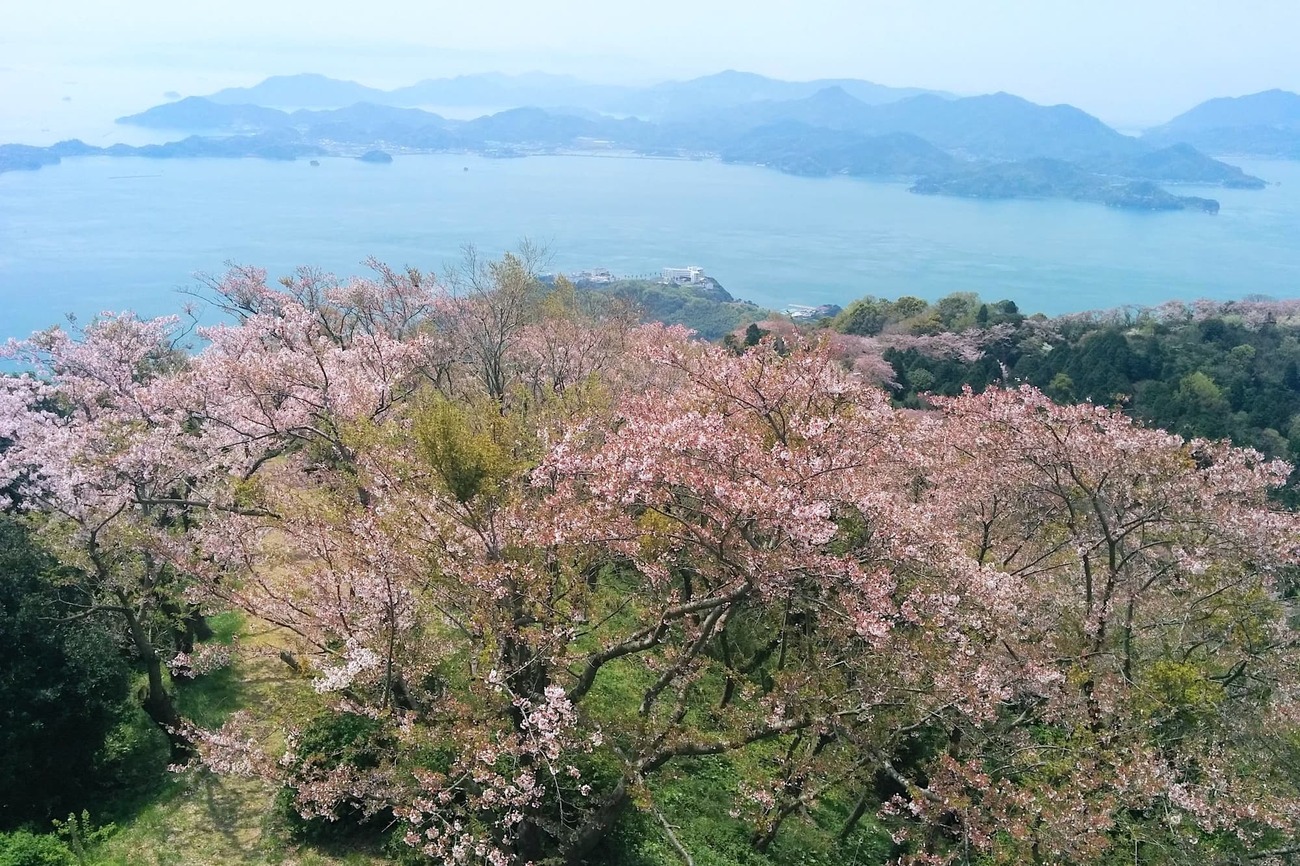 愛媛県・上島町に位置する岩城島は、「青いレモンの島」としても知られ、穏やかな瀬戸内の島々の中でもとりわけ春に訪れたい絶景スポットがあります。それが、島の最高峰「積善山(せきぜんざん、標高370m)」です。美しい放物線状の山容から「岩城富士」と呼ばれ、登山やハイキング愛好者に親しまれています。春になると山一帯に植えられた約3,000本の桜が一斉に咲き誇り、山をまるごと淡いピンクに染め上げる光景は、まさに息を呑む美しさ。山頂まで続く約4kmの舗装路は桜のトンネルとなり、歩く人々を優しく包み込みます。さらに、新緑に移り変わる木々や、同時期に咲くヤマツツジが彩りを添え、瀬戸内海の穏やかな青とのコントラストが一層引き立ちます。頂上の展望台からは、桜越しに多島美の瀬戸内海が広がり、ここでしか味わえない天空の花見が楽しめます。春の岩城島で、海と桜の贅沢な競演をぜひ体感してみてください。