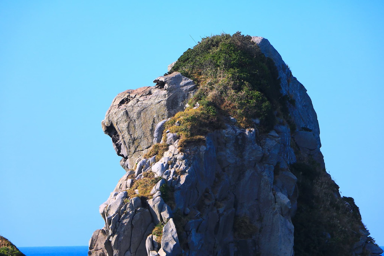長崎県北部、玄界灘に浮かぶ壱岐島は、古くから大陸との交易の要衝として栄え、神話の国産み伝説でも知られています。島名「壱岐」の由来は、誕生した島が「生きて」動いてしまわないよう、八本の柱で大地に繋ぎ留めたという言い伝えにちなんでいます。その名残とされるのが、北西部の黒崎半島に立つ「猿岩」。かつての柱の固定台が波風に削られ、猿の横顔そっくりの奇岩となりました。対馬灘を背にそびえる姿は迫力満点で、近年は壱岐屈指の絶景スポットとして人気です。展望台からの眺望はもちろん、足元に迫る荒波を感じながら間近で仰ぎ見るのもおすすめ。特に夕暮れ時、赤く染まる空と水平線に沈む太陽を背景に浮かび上がる猿岩のシルエットは、思わず息をのむ美しさ。壱岐を訪れたらぜひ立ち寄りたい絶景スポットです。