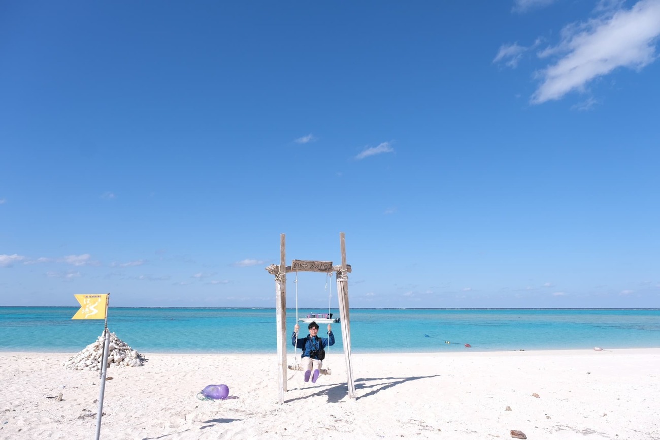沖縄県久米島を代表する絶景スポット「ハテの浜」は、白い砂浜と透き通ったターコイズブルーの海が織りなす、まさに東洋一と称される美しさを誇ります。泊(とまり)フィッシャリーナからのツアーに参加すれば、色彩豊かな海をクルージングしながらウミガメに出会えることも。到着すると、360度海に囲まれた白砂の世界が広がり、思わず息を呑むはずです。冬でも温暖な久米島では、シーズン外でも比較的人が少なく、浜を独り占めしたような贅沢な時間を過ごせます。波打ち際を散歩したり、人気のブランコに乗って非日常感を満喫したりと過ごし方は自由。滞在中、天気の良い日を狙えば、一層澄んだ青の絶景に出会えるでしょう。肩の力を抜いて、久米島の楽園を堪能してみてください。