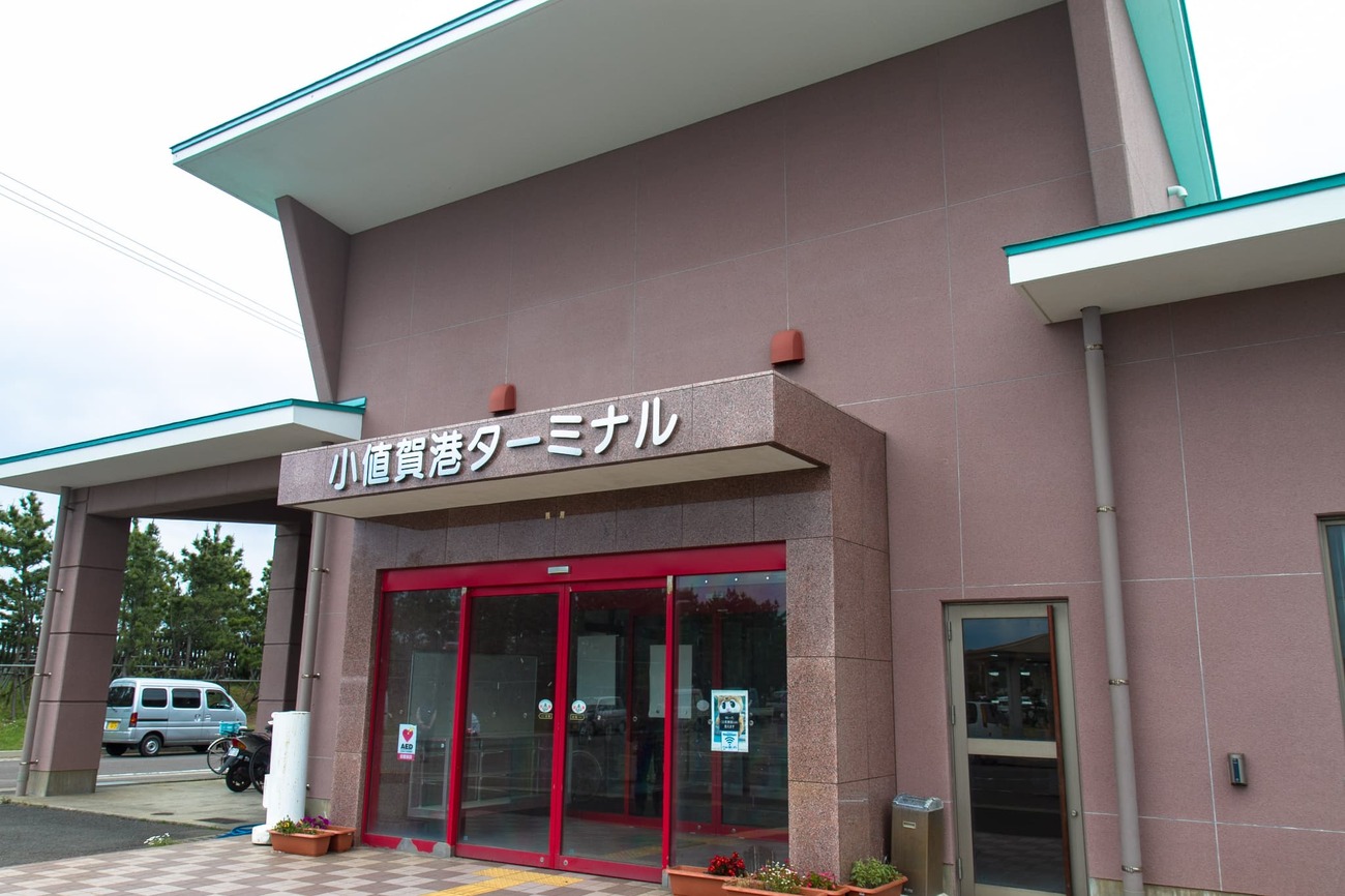 船を降りて目の前の小値賀港ターミナルに足を運び、「おぢかアイランドツーリズム」のカウンターに向かいます。明後日渡る予定の無人島・野崎島上陸の手続きをするためです。野崎島散策時に廃校を利用した休憩所の利用ができますが、その施設利用料1000円を支払うのと、島の地図ももらったり船の出発時刻などを教えてもらいました。ついでにこのあと使う電動アシスト自転車も借りました。6時間で1000円です。安い! 他にも小値賀島の見どころや飲食店、買い物スポットなど、詳しく教えてもらえました。