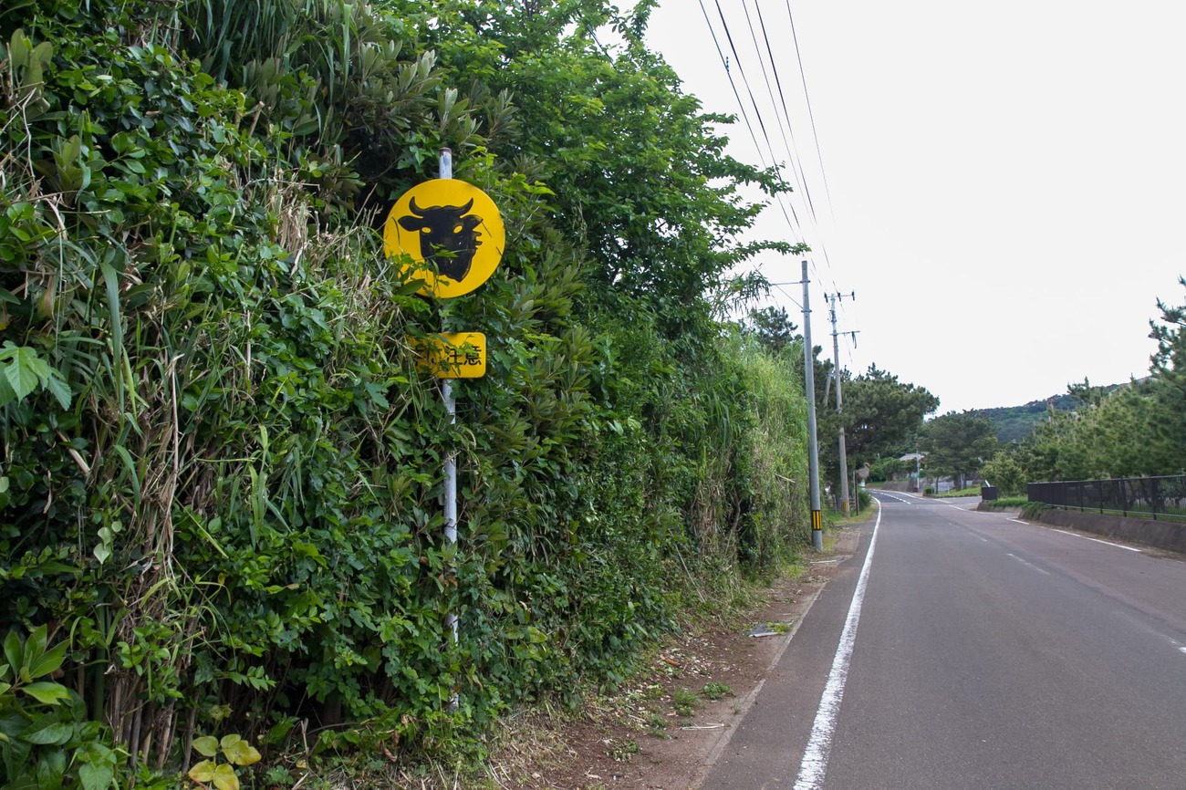 島は畜産が盛んで、あちこちで放牧されている牛を見かけたり、小値賀島オリジナルの「牛注意」の看板もあちこちにあります。また、水田がいたるところにあるのが印象的でした。海沿いには「牛の塔」というかつて新田開発の時に使役され倒れた牛のための供養塔があります。