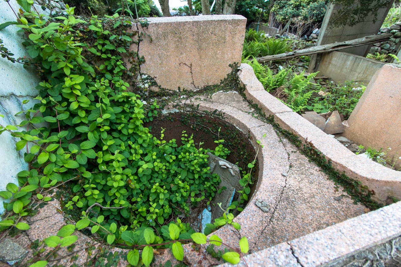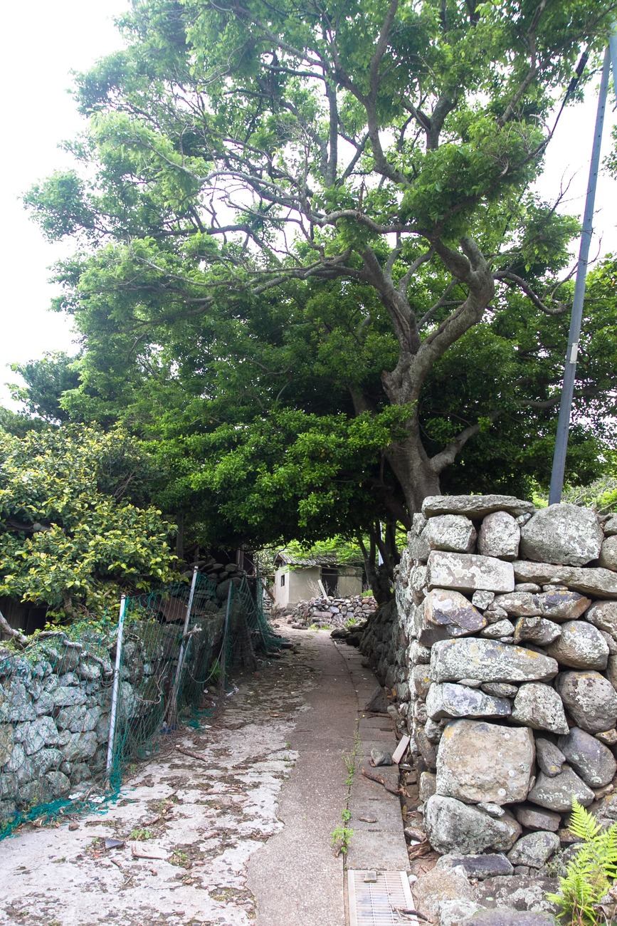 港周辺はかつての野崎集落が広がっていますが、今は人もおらず、廃屋が生活の名残を伝えるのみ。野崎島はかつて野崎、野首、舟森の3つの集落がありました。そのうち野首と舟森はキリシタン集落だったそうです。最盛期には650人以上が暮らした島は、1990年代にすべての住民が島を離れ、無人島となっています。現在は廃校を改修した休憩・宿泊施設である「野崎自然学塾村」の管理人が1人、島に暮らすのみです。