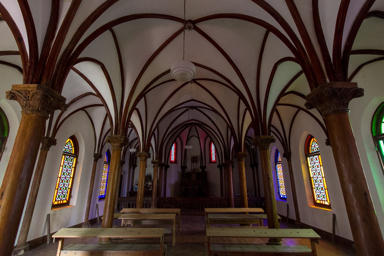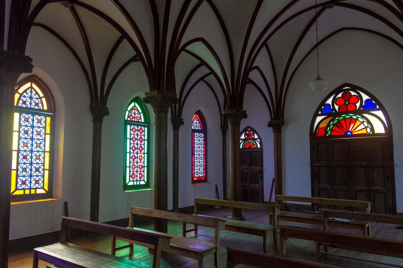 (※旧野首教会は、現在大規模修繕工事中で外側も足場で覆われています。工事は2025年11月までかかる見通しです)