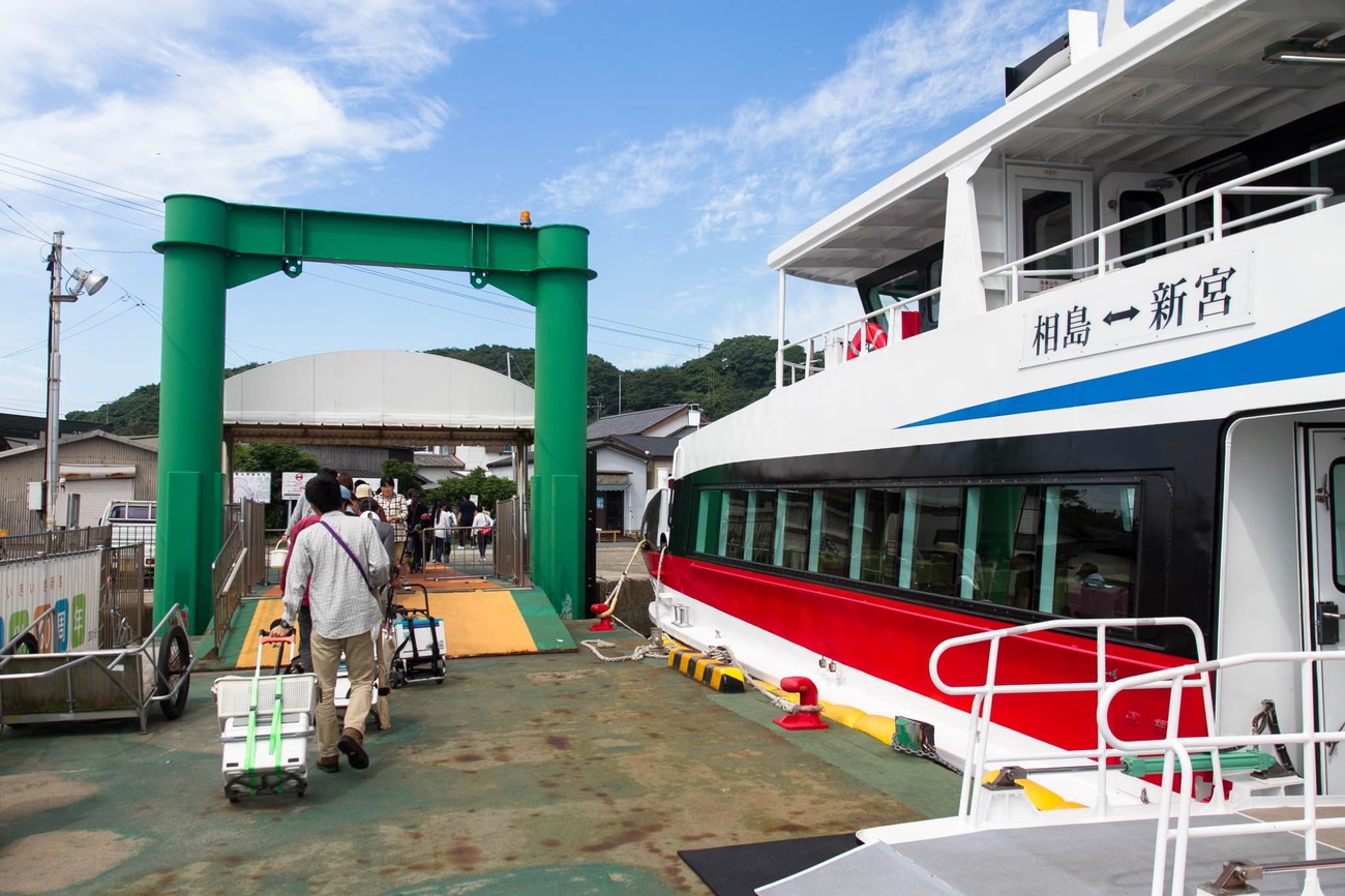 「博多から1時間くらいの新宮港から行ける島に、ネコがたくさんいるみたいだから行こう!」と福岡在住の友人から誘われたのは、別の用事で博多に滞在中のこと。思わず二つ返事で足を伸ばすことになったのが、福岡のネコ島「相島」でした。博多の中心・中洲川端駅から福岡市営地下鉄に乗り、西鉄貝塚線に乗り換えて西鉄新宮駅へ。駅前のロータリーで小さなコミュニティバスに乗り込み、20分ほどバスに揺られると「相島渡船場バス停」に到着です。