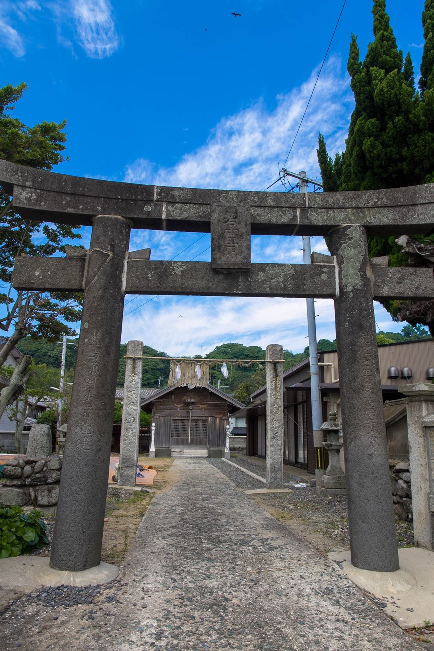 路地を進むと「朝鮮通信使関連遺跡群」の案内板を見つけて、「ああ、この島も大陸との往来の中継地だったんだ」と知ることになりました。「若宮神社」の立派な鳥居を仰ぎ見て「神社にはネコがいるはず」という根拠のない思い込みも外れ、またしても会えずじまい。海側の道から集落の奥へと続く道に入ると、ようやく1匹いました。「やっと会えた」としゃがみ込むと、人馴れしているのか逃げる素振りもなく、ひとしきり撫でることに成功。後ろからやってきた島のおばちゃんたちに気がつくと、当たり前のようにくっついて行ってしまいましたが、きっといつもエサをもらっているのでしょう。ネコと人の距離が近い島だな、と感じました。少し歩くと、赤い首輪が可愛い黒ネコにも遭遇。ゆっくりついて行くと、畑の中で遊び始める無邪気さが微笑ましい。