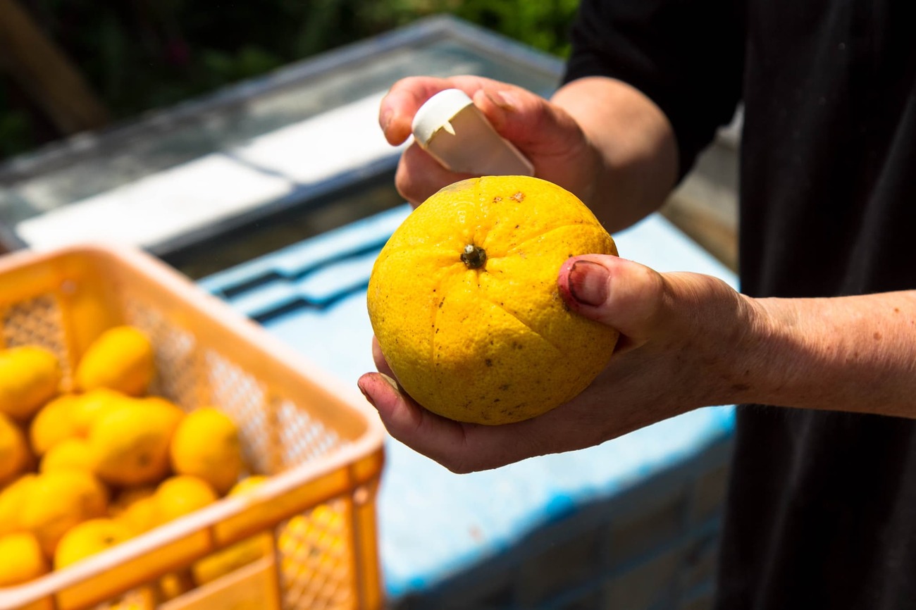 港へ戻る途中、なにかの店の前に「御自由にお持ち下さい」と書かれたカゴには、たくさんの甘夏。手に取って眺めていたら、店内からおばちゃんが出てきて「これで簡単にむけるから!」と、ミカンの皮むき器を実演付きで貸してくれました。島で採れた甘夏は小ぶりながらも甘くて実に美味しい。