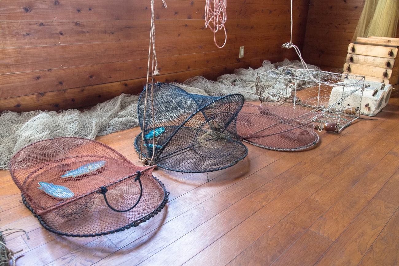 港前まで戻り、渡船待合所の横にある「丸山食堂」に立ち寄りました。1階は食堂と土産、2階は小さな資料館。入口の黒板には、ネコと触れ合うときのお願いとして、あまりエサをやらないこと、と書かれていました。
