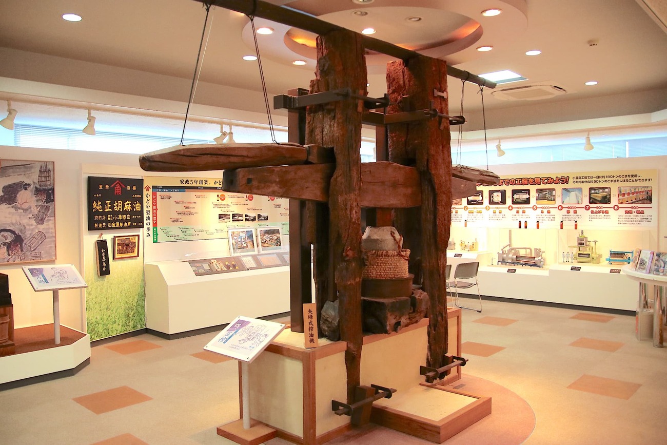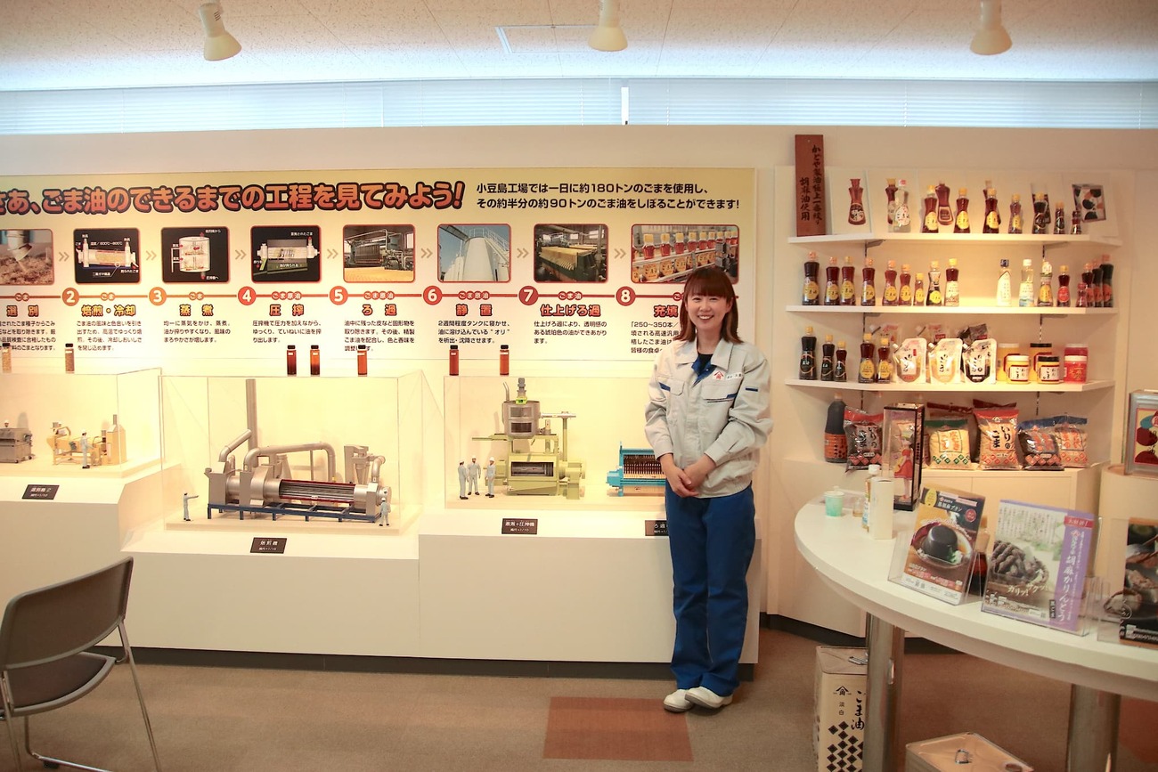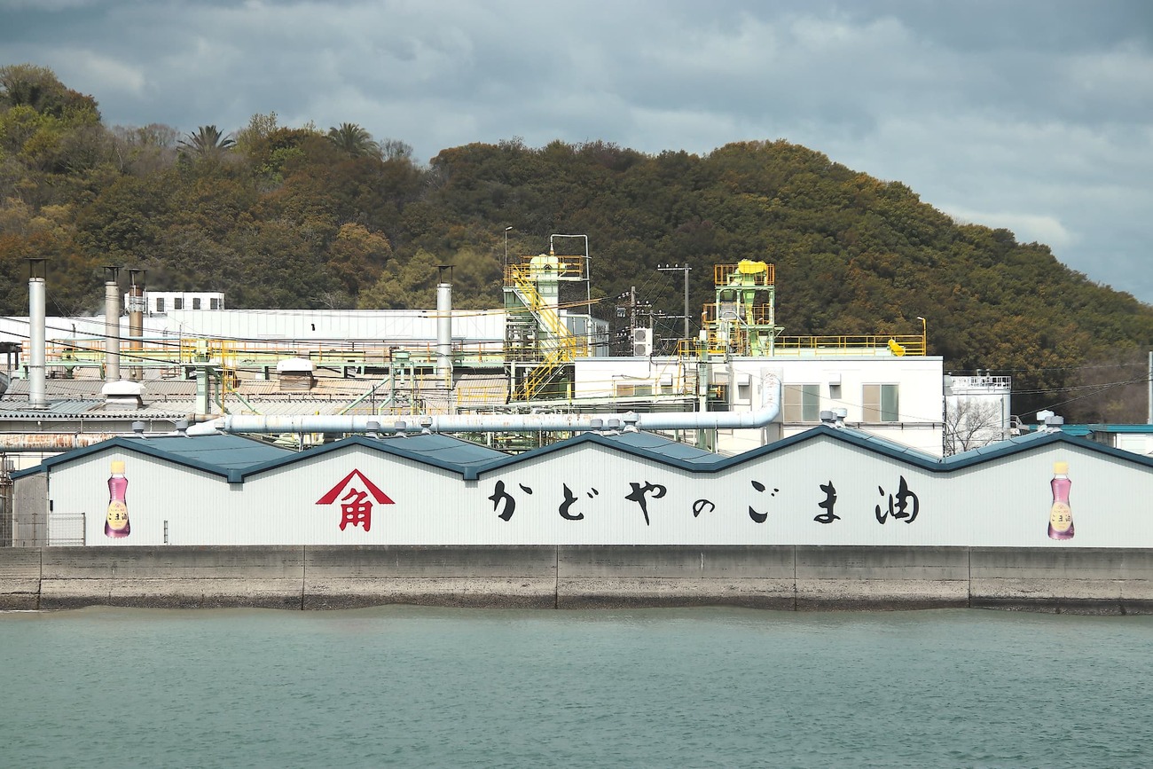 全国シェアNo.1を誇る「かどや製油」。その長い歴史の原点は、実はここ小豆島にあります。土庄港に降り立つと、潮風に混じってふわりと漂う香ばしいごま油の香り。まさに“ごま油の島”の入口に立ったことを実感します。工場に併設された資料館「今昔館」では、創業から150年以上にわたる歩みや、ごま油の製造工程を映像や展示でわかりやすく紹介。見学ツアー(要予約)では、ごまの香りを比べながら楽しむテイスティング体験もできます。ここで初めて知る人も多いのが、ごま油の製法プロセス。ごまを焙煎して搾る「圧搾法」は、昔ながらの製法で、時間がかかりますが、香ばしさとまろやかさを最大限に引き出せるのが特徴です。小豆島の工場ひとつで、家庭用ごま油の需要をまかなえるのは驚きです。なお、かどや製油は島とともに発展してきた企業として、近年は「ごまのみらい小豆島プロジェクト」を始動。国内ではほとんど姿を消した国産ごまの栽培を復活させる取り組みを進めています。見学ではスタッフとの会話を通じて、地域とごま油づくりの深い絆を感じられるのも魅力。見学後には、直販価格で定番のごま油に加えて、ごまらー油など珍しい商品も購入可能。誰もが馴染みのあるごま油ですが、ここでしか味わえない奥深さに出会う体験が待っています。