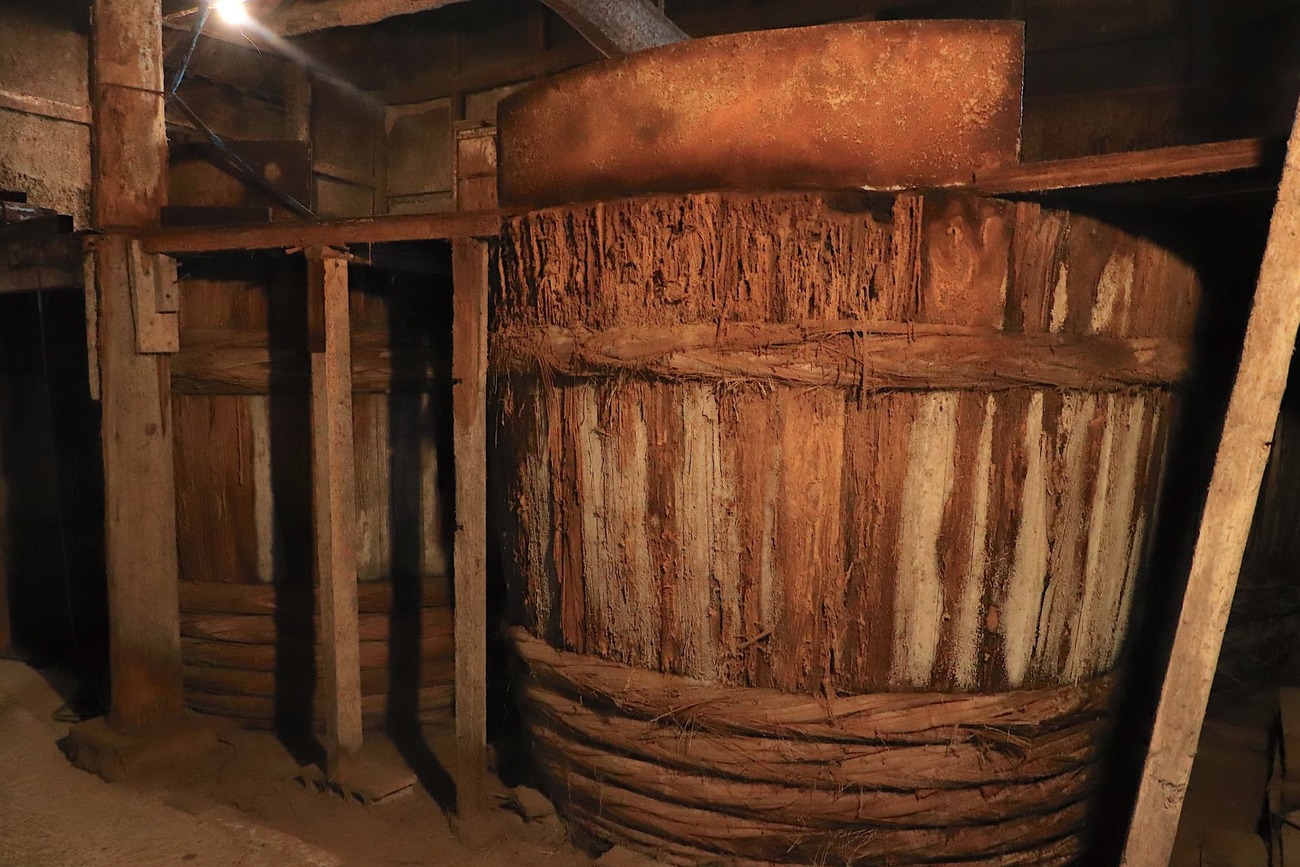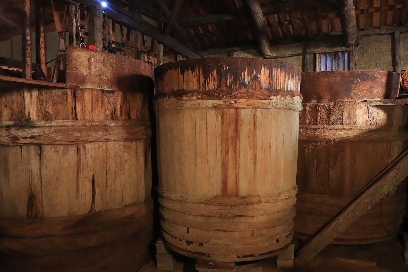 100年以上にわたり小豆島の醤油文化を受け継ぐ「ヤマロク醤油」。国の有形文化財に登録された木造の醤油蔵では、伝統的な杉樽仕込みの現場を間近で見学することができます。蔵の扉を開けると、ふわりと鼻をくすぐる独特の香り。それは、長年この蔵に棲みついた酵母菌や乳酸菌が生み出す、発酵の深い香りです。静かな蔵内には、高さ2メートルを超える杉樽がずらりと並び、熟成を待つもろみがプチプチと音を立て、呼吸をしています。かつて木桶を新たに作れる職人が少なくなった現状を受け、五代目社長自身が技を学び、自ら手がけた“初樽”が蔵に据えられています。木桶仕込みの醤油づくりは、時間と自然の力、そして人の手によって守られる、まさに奇跡のような営みです。見学を通じて、醤油が単なる調味料ではなく“生きた文化”であることを実感できるでしょう。見学の最後には、鶴醤や菊醤といった醤油のテイスティングも楽しめます。さらに、敷地内の「ヤマロク茶屋」では、鶴醤を使ったプリンやアイスなど、ここでしか味わえないスイーツも。蔵の香りとともに、伝統の味を五感で堪能できる特別なひとときが待っています。