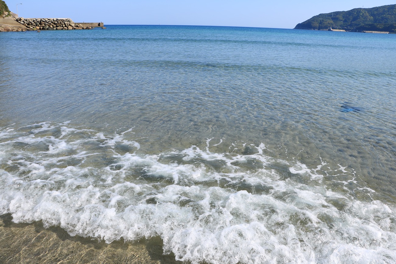 まず最もスタンダードな被写体である海。平面的な構図になりがちですが、切り取り方によって少し印象が異なります。まず王道である広角、引きの構図。水平線を高さ1/2の位置に持ってきて、ダイナミックな海をそのまま写せます。