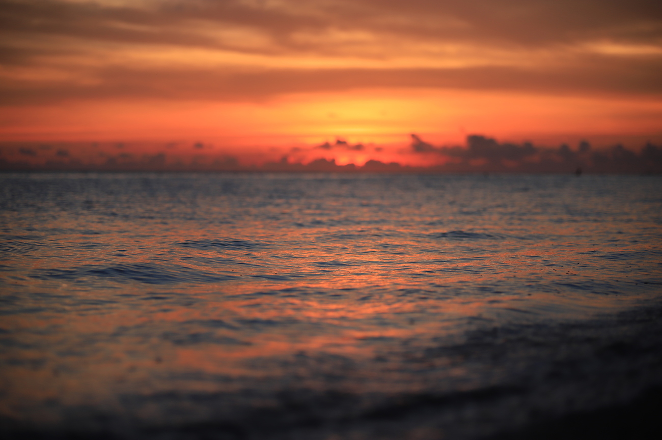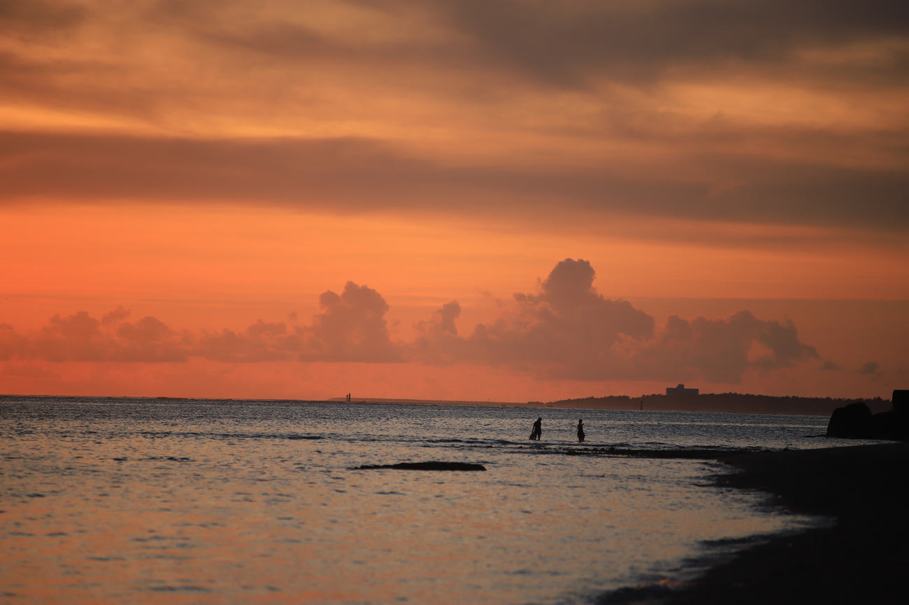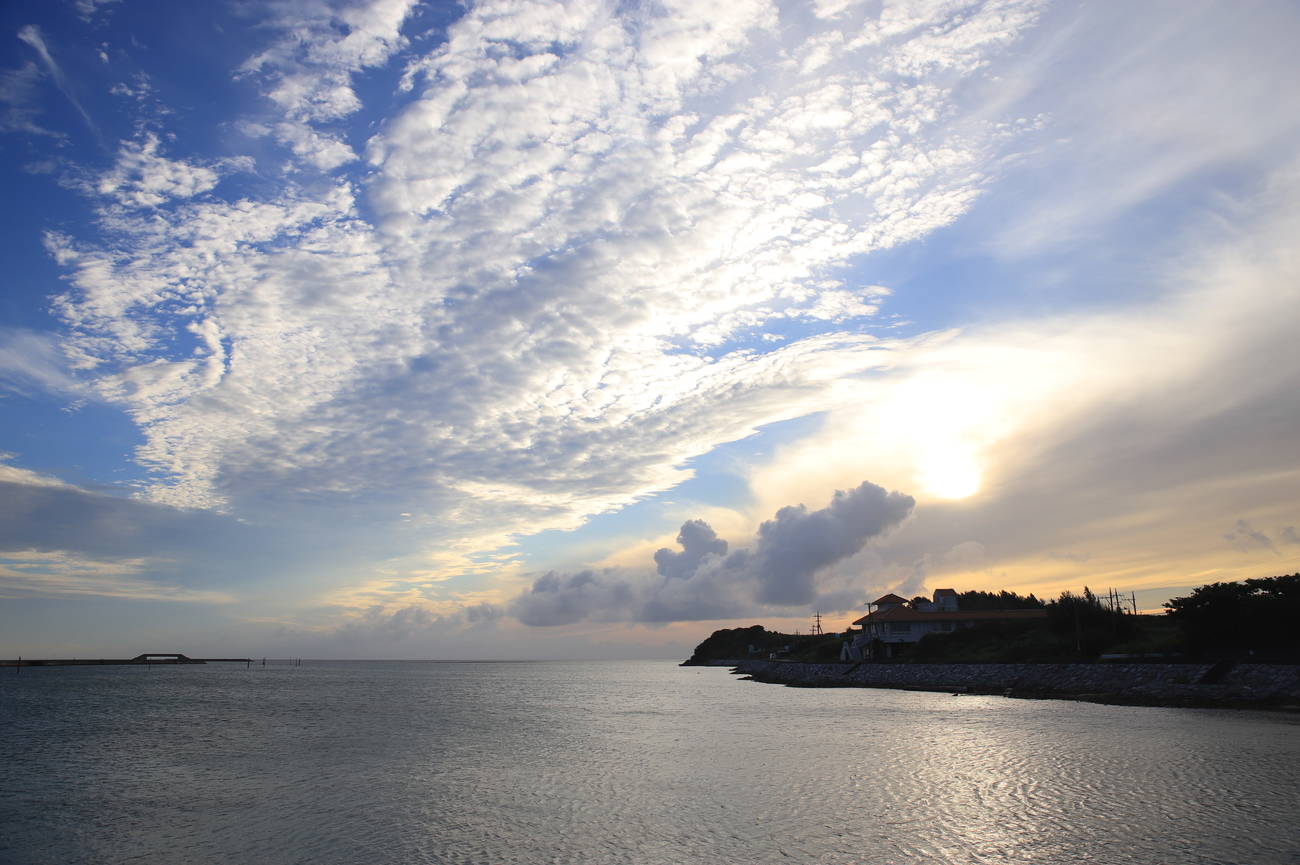 ひとえに海といっても、劇的な色彩変化が待っています。真紅の朝焼けとともに白んでゆく朝。海の彩度が一段と増す日中。午後には、光の道を作りながら日が沈み、ドラマチックなオレンジ色からほのかに紫がかるマジックアワー。空の表情変化と連動する海を捉えることも、離島の風景を撮る一つの醍醐味です。
