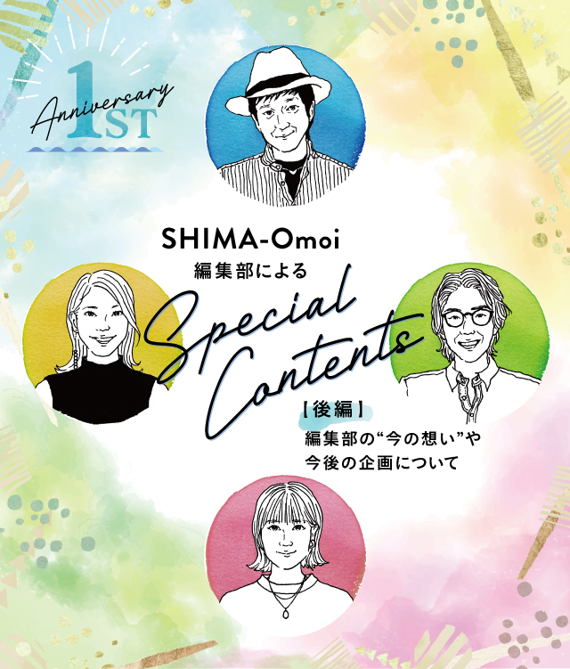 そうそう。そういった課題を乗り越えようと立ち上がる人たちもいて。SHIMA-Omoiをもっともっと大きくして、離島が抱える課題にも影響を与えられるようなサイトにしていきたいね。