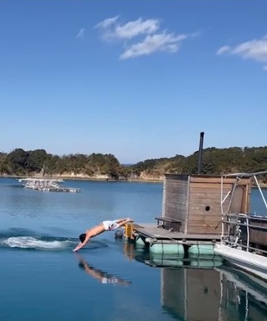 サウナ中級者〜上級者におすすめなのは、自然の中で少しワイルドなサウナ小屋を体験できる三重県間崎島の「離島キャンプ&サウナ」。1日1組限定の海上サウナで、薪割りから火起こしまで自分たちで行うセルフサービスのスタイル。サウナ後の冷やしは海にダイビング、そして潮風を浴びながらの外気浴と、プチサバイバルなサウナ体験を楽しめます。