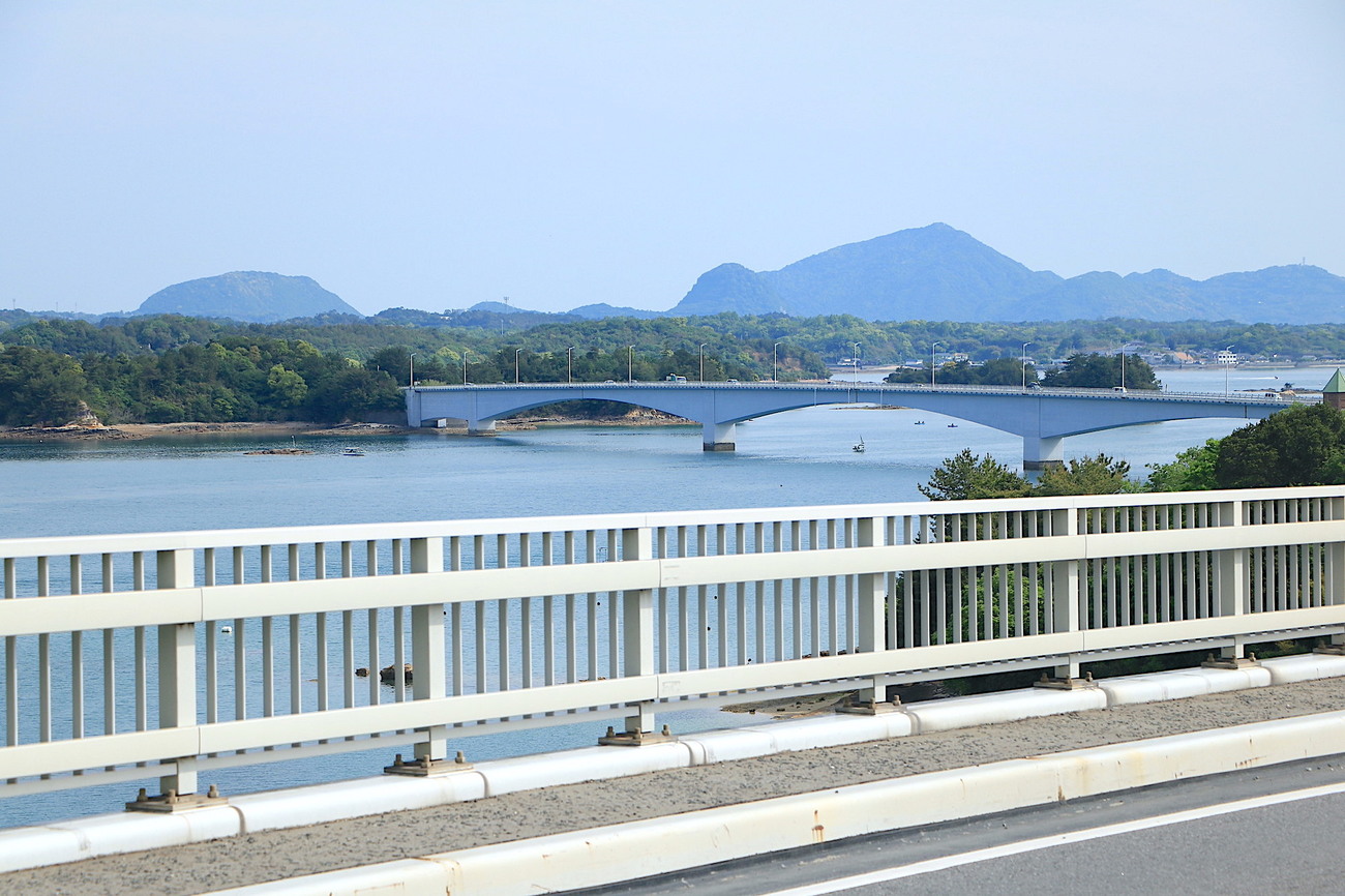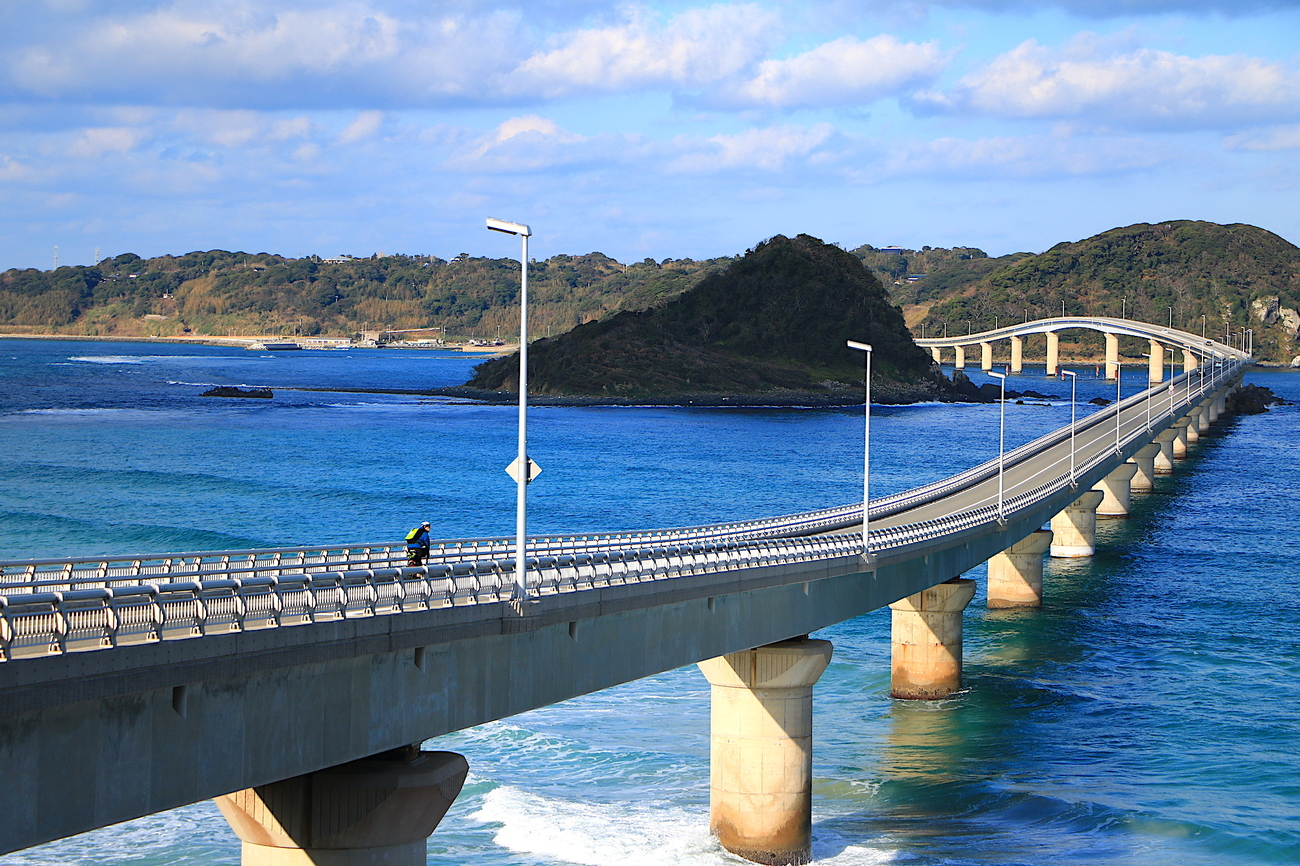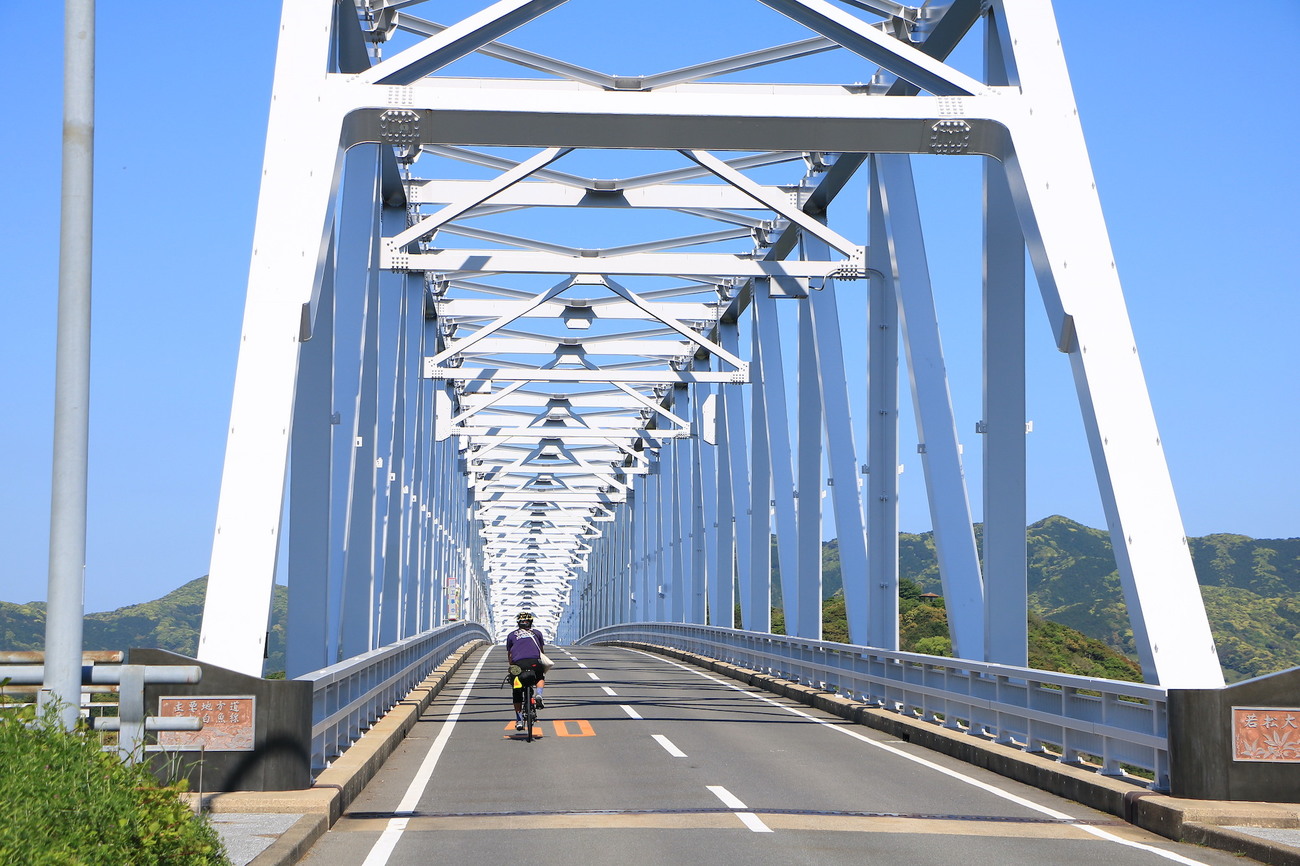 日本で初めてパイプアーチ式を採用した松島橋(5号橋)や、アーチを描くベージュ色の大矢野橋(2号橋)など、独特の造形美を見せる橋を一つ一つ渡りながら、島原半島まで広がる有明海と、天草ならではの多島美を望みます。磯の香りが鼻腔をかすめ、涼しげな潮風が吹き抜ける風光明媚なサイクリングルートです。