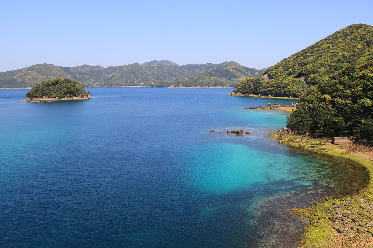 そこに待っているのは、圧倒的に美しい海。紺碧色の海から、エメラルドグリーンの海まで、ペダルを漕ぐごとに海の色が変わっていきます。特に、道を走り終えた先に広がる、日島周辺のターコイズブルー色の海の鮮やかさが今でも脳裏に焼き付いて離れません。