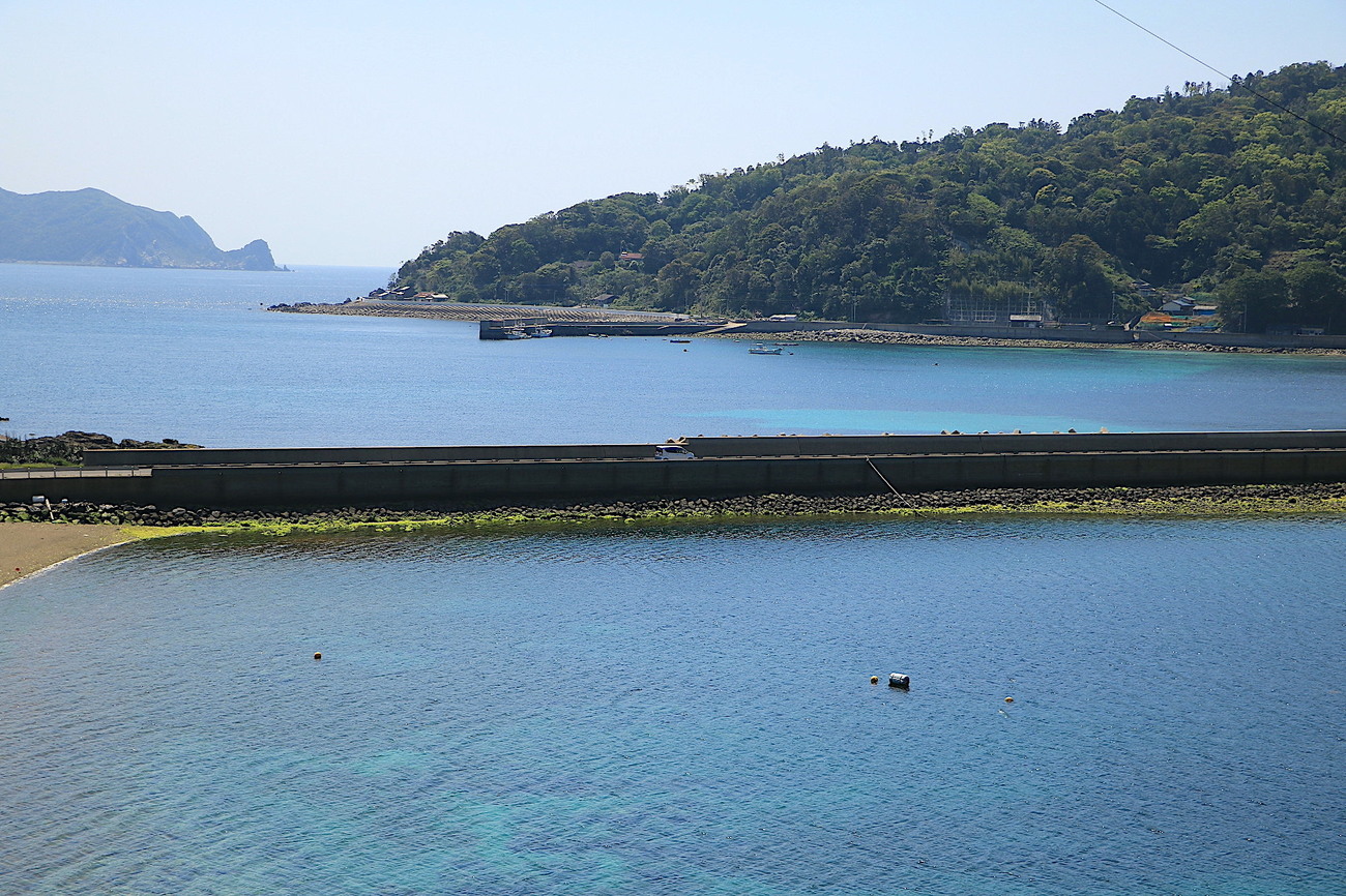 少しディープな観点ですが、漁生浦島(りょうぜうらがしま)から日島の区間には、堤防道路が採用されています。島民の悲願だった防波堤と陸路を一石二鳥でまかなう目的で建設された、全国的にも珍しい構造物です。