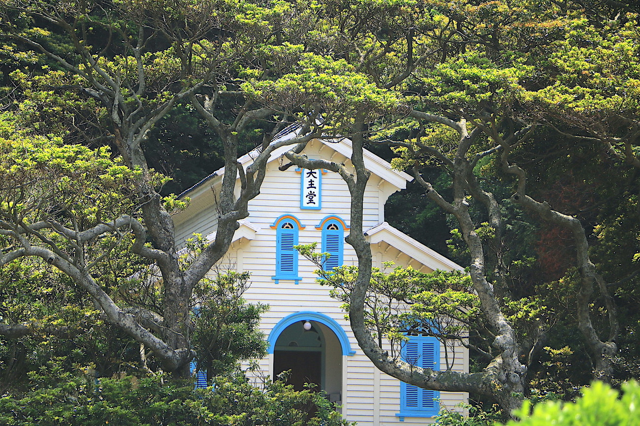 道の途中には、世界遺産の構成資産の一つ「江上天守堂」が佇んでいます。まるで物語の中に出てきそうなメルヘンチックな雰囲気を醸し出している可愛らしい教会堂は必見です。